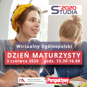 admin 6 lat temu Bez kategorii , OrganizacyjneMinisterstwo Nauki i Szkolnictwa Wyższego wraz z Miesięcznikiem Edukacyjnym Perspektywy na stronie internetowej www.studia.gov.pl w okresie od 3 czerwca do września br. przeprowadzi kampanię informacyjną wspierającą rekrutację na studia w roku akademickim 2020/21. Pierwszym jej etapem będzie realizowany 3 czerwca „Wirtualny Dzień Maturzysty”, podczas którego młodzież wysłucha m.in. prelekcji Pana Marcina Smolika, Dyrektora Centralnej Komisji Egzaminacyjnej nt. matury przeprowadzanej w szczególnych warunkach oraz mini-wykładów ekspertów Okręgowych Komisji Egzaminacyjnych „przynoszących” ostatnie podpowiedzi umożliwiające pomyślne zdanie egzaminów oraz eliminację najczęściej popełnianych błędów.