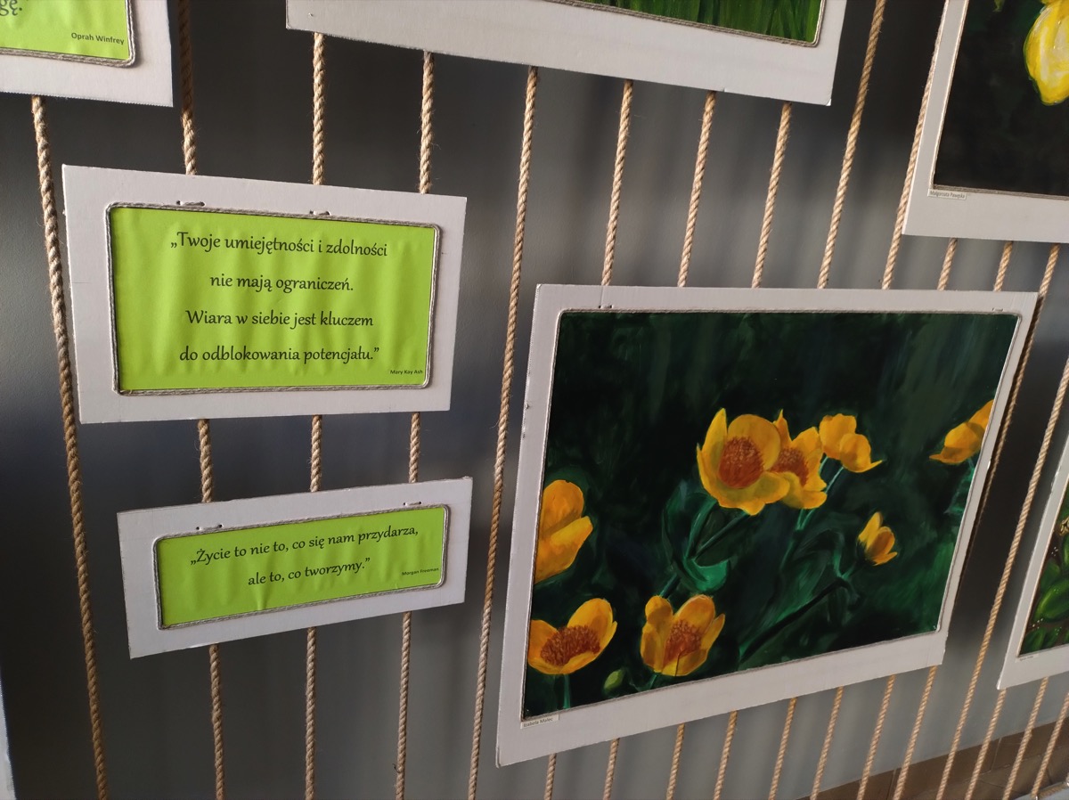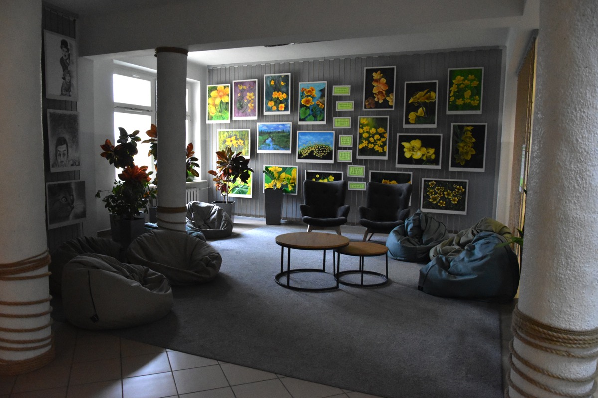 Z kolei z inicjatywy pedagogów szkolnych powstała „strefa relaksu”, czyli zaprojektowane i wydzielone miejsce na korytarzu pierwszego piętra, gdzie można wygodnie usiąść (zakupiono w tym celu fotele i siedziska), odpocząć, poczytać, porozmawiać lub zrelaksować się. To także miejsce, gdzie eksponowane są prace uzdolnionych plastycznie uczniów. Czarno-białe portrety wykonane w technice rysunku (ołówek, węgiel) tworzą „małą galerię”. Większą stanowią kolorowe malarskie przedstawienia kaczeńców. Uczniowie z różnych klas przygotowali je w szkole, pracując pod okiem nauczyciela plastyki w specjalnie zaaranżowanej pracowni malarskiej. Oprawione obrazy tworzą kolorową scenerię „strefy relaksu” i są dowodem na to, że w szkole uczy się młodzież niezwykle uzdolniona plastycznie.