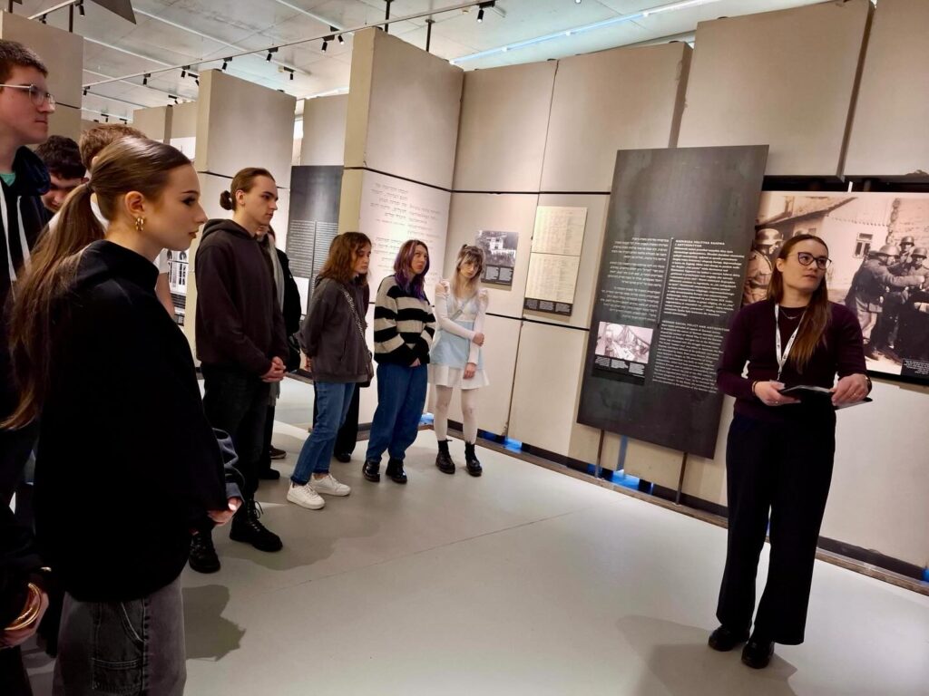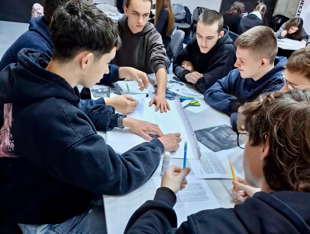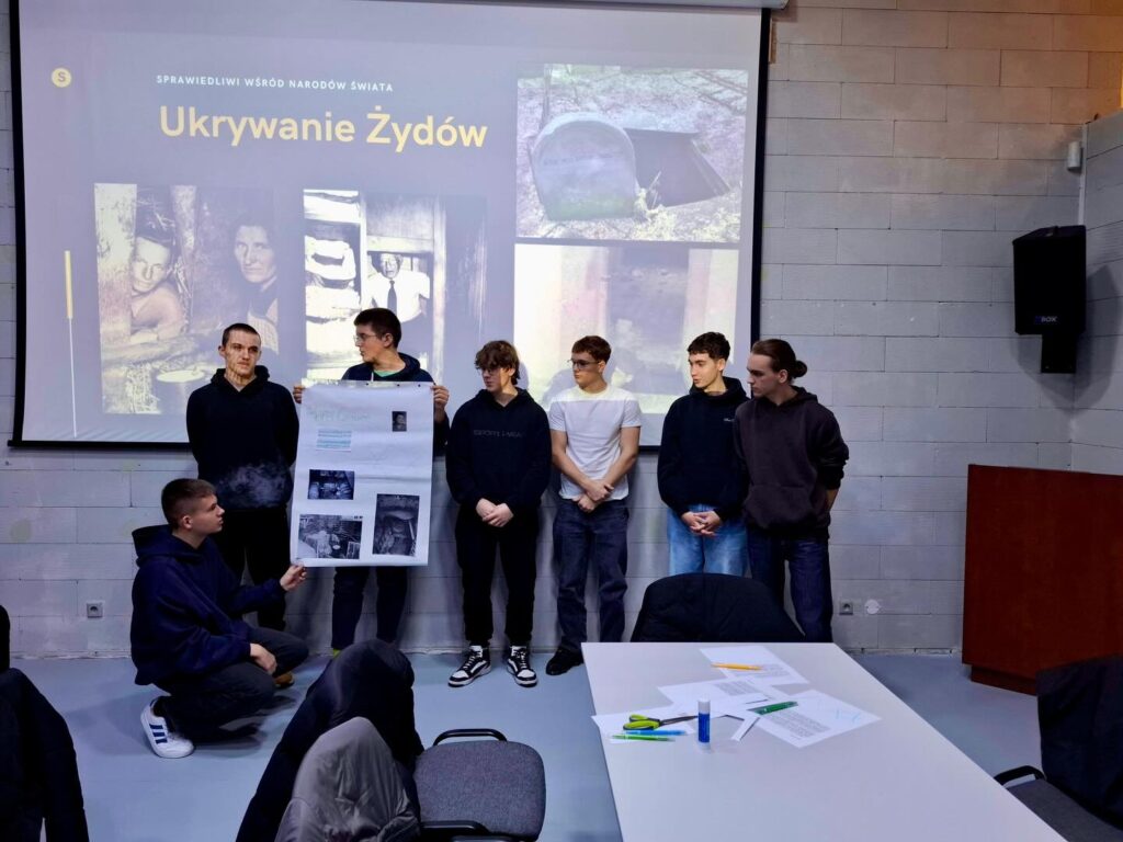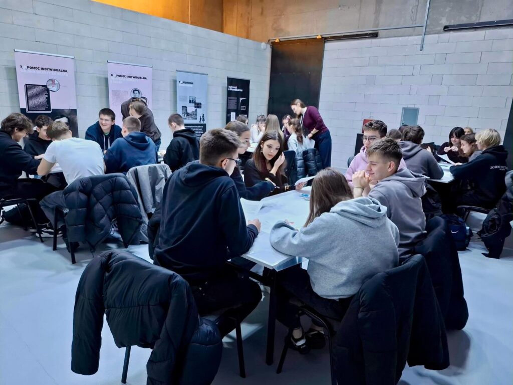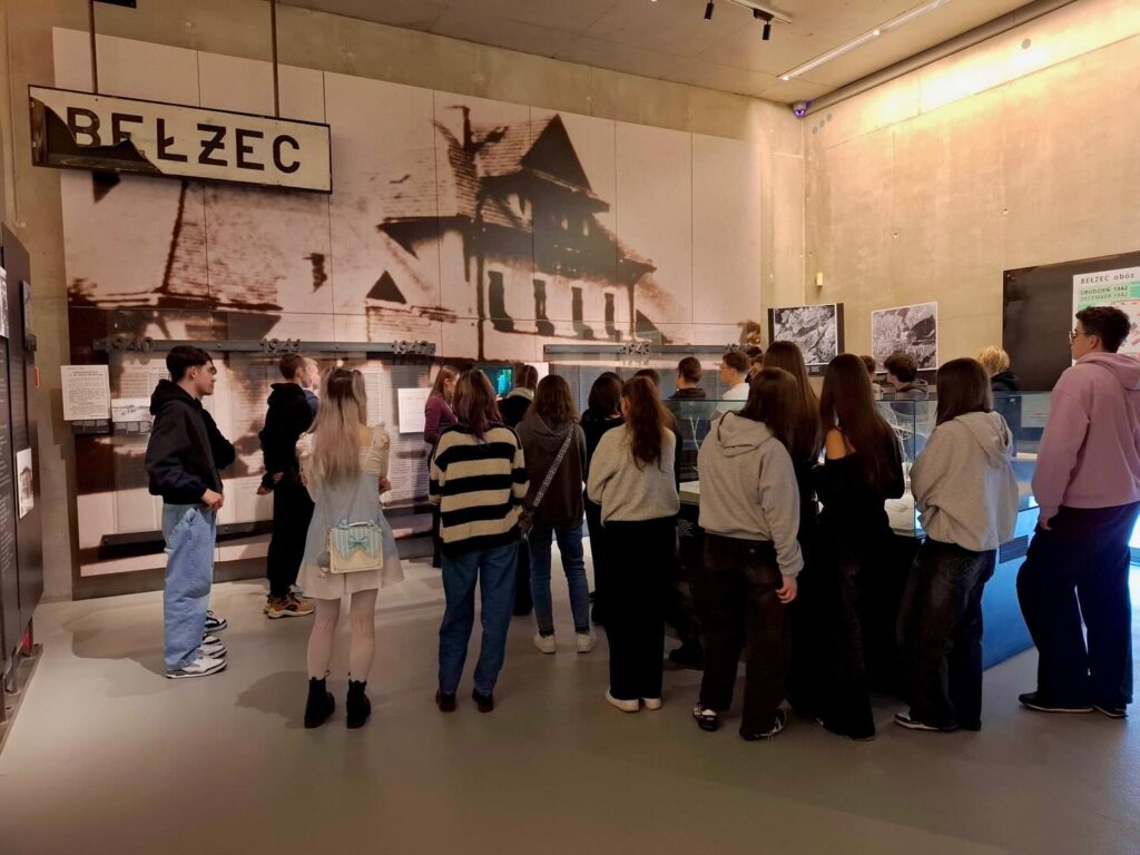4 grudnia 2025 r. uczniowie z klasy III A i III B uczestniczyli w różnych warsztatach edukacyjnych w Muzeum i Miejscu Pamięci w Bełżcu – jednym z trzech obozów zagłady funkcjonujących w ramach Akcji Reinhardt. Celem wyjazdu było pogłębienie wiedzy historycznej oraz kształtowanie postaw szacunku wobec ofiar wojny.Punktem wyjścia do pierwszych zajęć warsztatowych była prezentacja pt. „Jak Polacy ratowali Żydów przed Zagładą?”, która ukazywała niezwykłe świadectwa odwagi, solidarności i człowieczeństwa w czasach II wojny światowej. Uczniowie poznali historie rodzin niosących pomoc Żydom, a także kontekst społeczny i prawny, w którym te akty bohaterstwa miały miejsce. Następnie odbyły się warsztaty plastyczne, podczas których licealiści wykonywali plakaty inspirowane tematyką prezentacji. Praca twórcza pozwoliła młodzieży wyrazić swoje przemyślenia i emocje dotyczące ratowania ludności żydowskiej. Kolejnym punktem programu było zwiedzanie ekspozycji muzealnej oraz spacer po terenie dawnego obozu. Uczniowie poznali historię funkcjonowania obozu zagłady w Bełżcu, skalę zbrodni popełnionych przez nazistów oraz losy ofiar, co skłoniło ich do głębokiej refleksji nad tragedią Holokaustu. Na zakończenie licealiści zapalili znicze, chcąc oddać hołd 450 tys. ofiar, których prochy znajdują się na terenie pomnika – cmentarza. Wycieczka była ważną lekcją historii i człowieczeństwa, a zdobyta wiedza i doświadczenia na długo pozostaną w pamięci uczestników.Wyjazd do Bełżca zorganizowany został w ramach przedsięwzięcia Ministerstwa Edukacji Narodowej „Wyjście z klasą”.