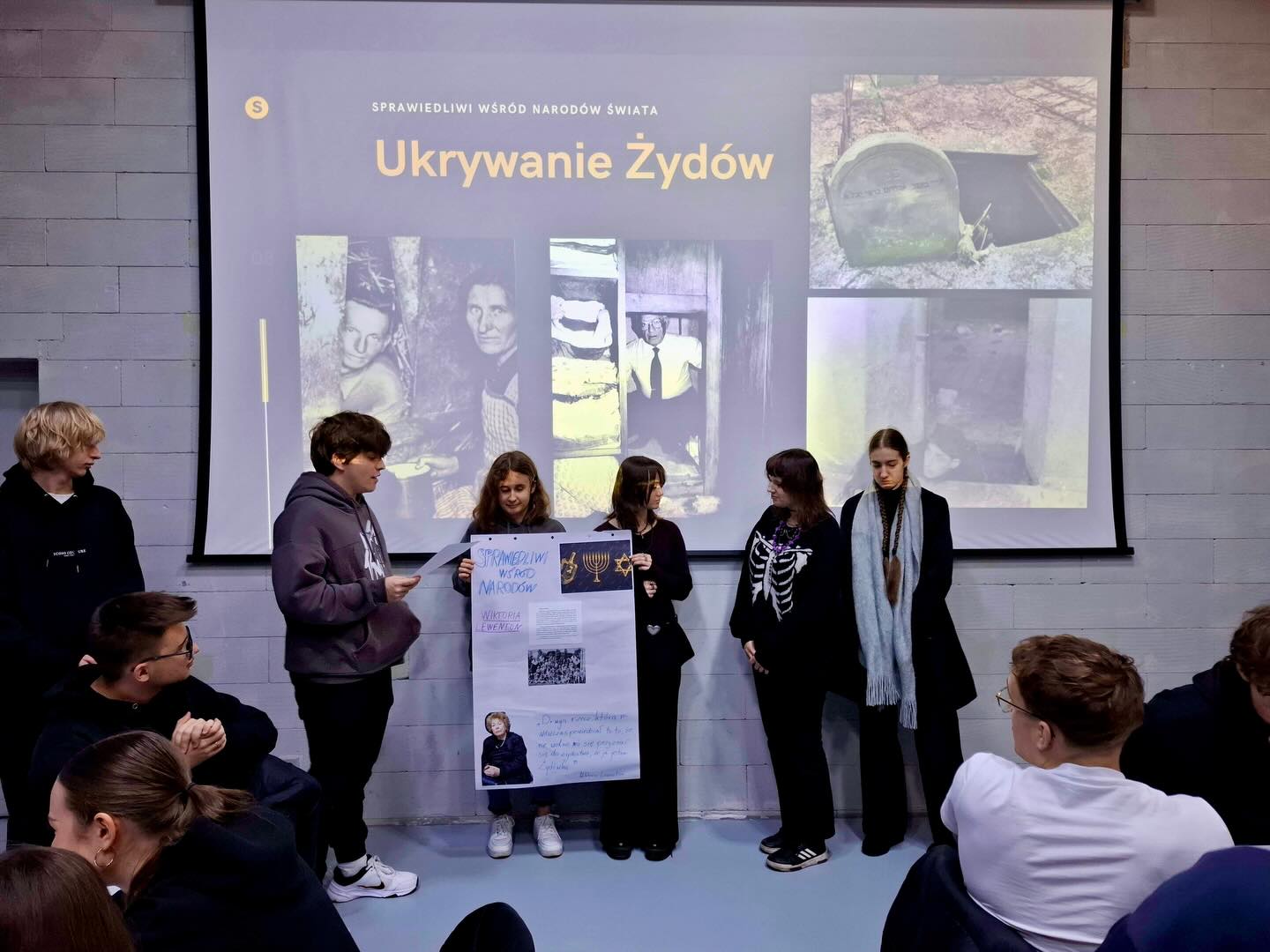 4 grudnia 2025 r. uczniowie z klasy III A i III B uczestniczyli w różnych warsztatach edukacyjnych w Muzeum i Miejscu Pamięci w Bełżcu – jednym z trzech obozów zagłady funkcjonujących w ramach Akcji Reinhardt. Celem wyjazdu było pogłębienie wiedzy historycznej oraz kształtowanie postaw szacunku wobec ofiar wojny.Punktem wyjścia do pierwszych zajęć warsztatowych była prezentacja pt. „Jak Polacy ratowali Żydów przed Zagładą?”, która ukazywała niezwykłe świadectwa odwagi, solidarności i człowieczeństwa w czasach II wojny światowej. Uczniowie poznali historie rodzin niosących pomoc Żydom, a także kontekst społeczny i prawny, w którym te akty bohaterstwa miały miejsce. Następnie odbyły się warsztaty plastyczne, podczas których licealiści wykonywali plakaty inspirowane tematyką prezentacji. Praca twórcza pozwoliła młodzieży wyrazić swoje przemyślenia i emocje dotyczące ratowania ludności żydowskiej. Kolejnym punktem programu było zwiedzanie ekspozycji muzealnej oraz spacer po terenie dawnego obozu. Uczniowie poznali historię funkcjonowania obozu zagłady w Bełżcu, skalę zbrodni popełnionych przez nazistów oraz losy ofiar, co skłoniło ich do głębokiej refleksji nad tragedią Holokaustu. Na zakończenie licealiści zapalili znicze, chcąc oddać hołd 450 tys. ofiar, których prochy znajdują się na terenie pomnika – cmentarza. Wycieczka była ważną lekcją historii i człowieczeństwa, a zdobyta wiedza i doświadczenia na długo pozostaną w pamięci uczestników.Wyjazd do Bełżca zorganizowany został w ramach przedsięwzięcia Ministerstwa Edukacji Narodowej „Wyjście z klasą”.