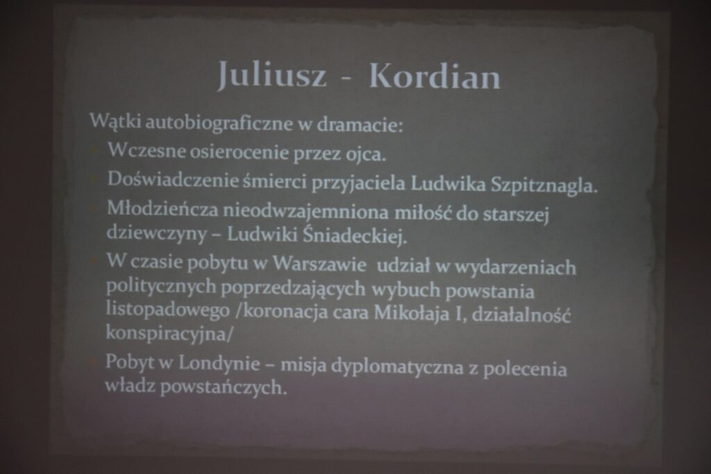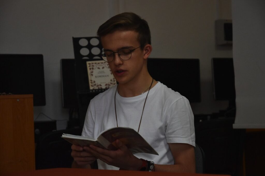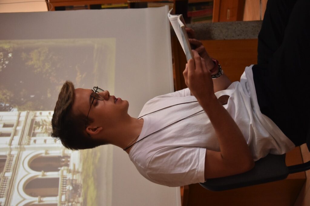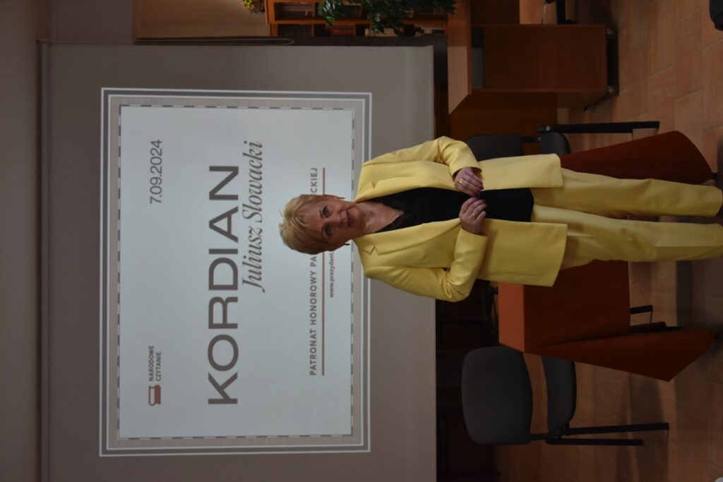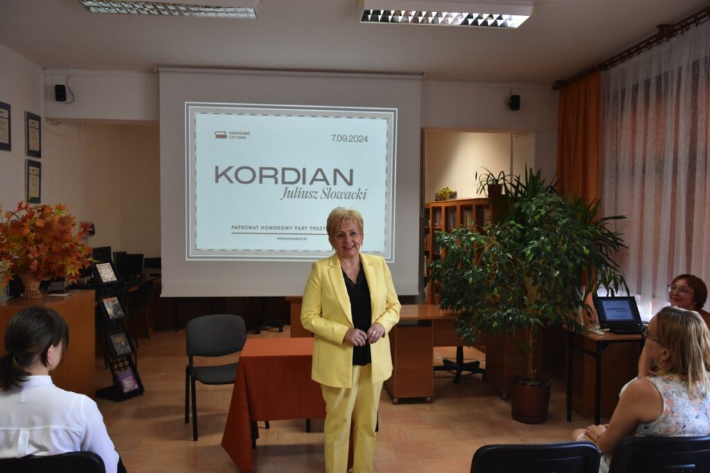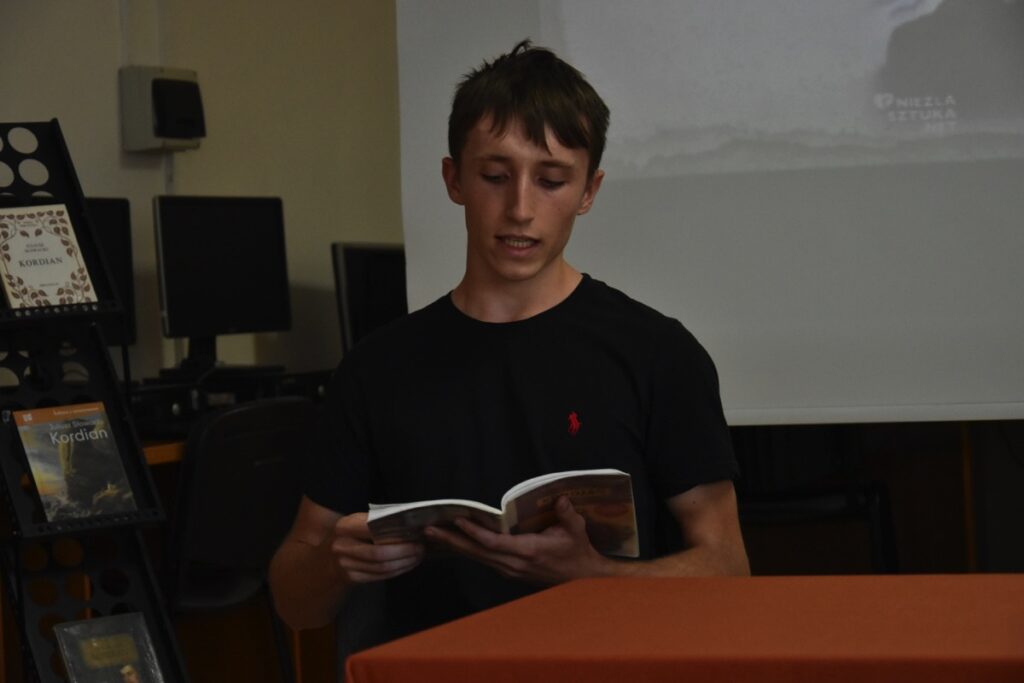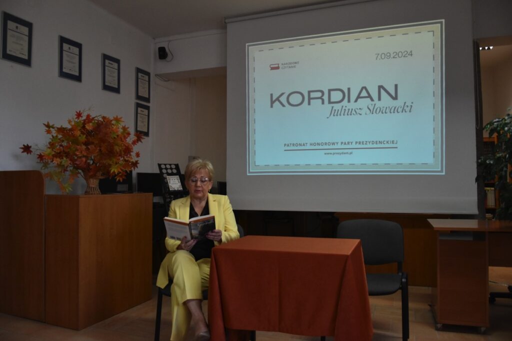 Główne obchody Narodowego Czytania w naszej szkole odbyły się 9 września 2024 roku w czytelni biblioteki szkolnej, gdzie uczniowie klasy III H zostali zapoznani z genezą i treścią lektury „Kordian” Juliusza Słowackiego. Następnie wysłuchali fragmentów dramatu czytanych przez Dyrektora szkoły Jolantę Rycyk oraz uczniów: Oliwię Korbę, Michała Lekana, Aleksandrę Markiewicz, Kornela Sitarza i Gabrielę Strzałkę. Ponadto licealiści obejrzeli materiały promujące to przedsięwzięcie, które opublikowano na stronie Kancelarii Prezydenta RP. Pozostali uczniowie naszej szkoły włączyli się w akcję, czytając fragmenty „Kordiana” z nauczycielami podczas lekcji. Na pamiątkę tego wydarzenia wszyscy chętni mieli także okazję otrzymać pamiątkowe pieczęcie Narodowego Czytania 2024.