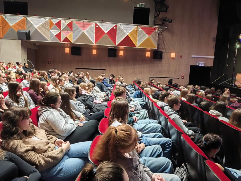 10 grudnia 2025 roku uczniowie naszego liceum obejrzeli spektakl „Kordian”, który zaprezentowany został przez aktorów Narodowego Teatru Edukacji im. Adama Mickiewicza we Wrocławiu na scenie Biłgorajskiego Centrum Kultury. Spektakl stanowił nowoczesną interpretację XIX-wiecznego dramatu, przedstawiał dylematy młodego bohatera, jego bunt, wahanie i poszukiwanie sensu istnienia oraz podkreślał najważniejsze motywy epoki romantyzmu: konflikt jednostki z rzeczywistością, misję narodową oraz tragizm wyborów.Po przedstawieniu odbyły się warsztaty teatralne na temat dramatu romantycznego oraz ćwiczenia techniczne z dykcji, emisji głosu i impostacji. Zajęcia prowadzili członkowie zespołu aktorskiego, którzy profesjonalnie łączyli wiedzę teoretyczną z praktyką teatralną. Udział w wydarzeniu pozwolił młodzieży nie tylko lepiej zrozumieć lekturę szkolną, ale również dał możliwość poznania podstaw warsztatu aktorskiego.