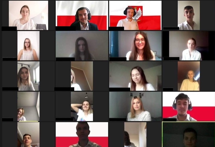 admin 5 lat temu UncategorizedPo raz kolejny nasza szkoła przystąpiła do akcji Ministerstwa Edukacji Narodowej „Szkoła do hymnu”. Uczniowie wspólnie z nauczycielami 10 listopada o godz. 11.11 odśpiewali „Mazurka Dąbrowskiego”. W tym roku ze względu na pandemię i konieczność prowadzenia edukacji zdalnej akcja została przeprowadzona online z wykorzystaniem aplikacji Zoom.
