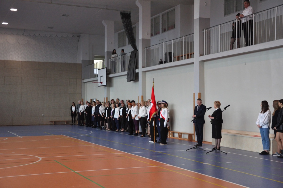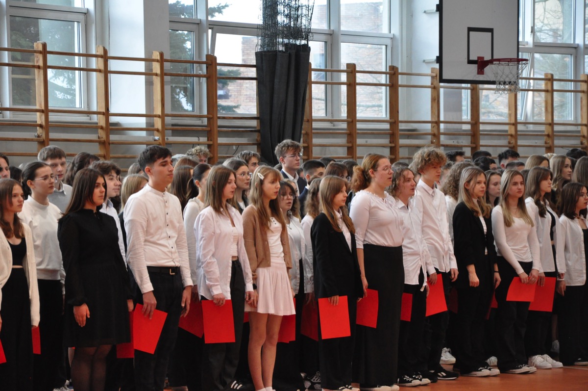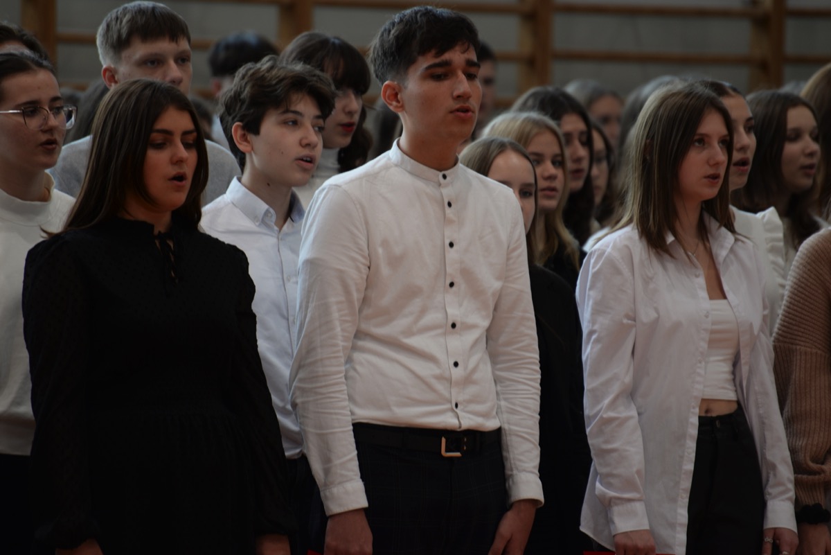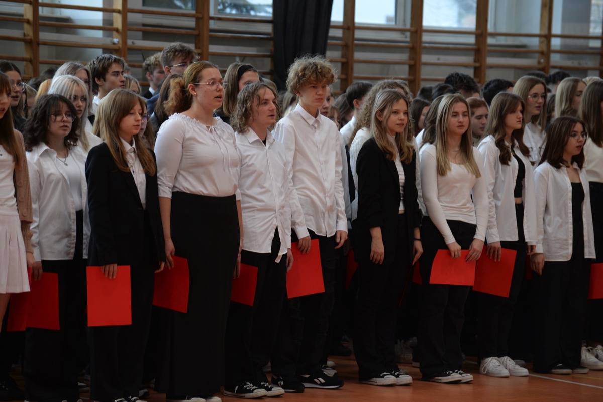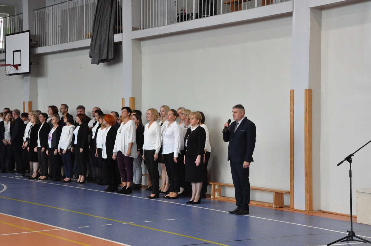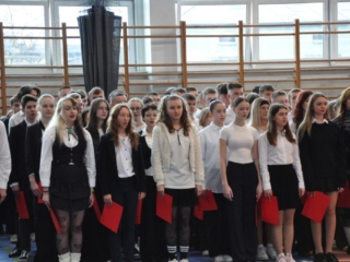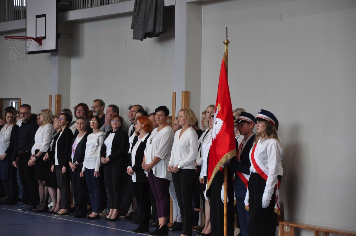 admin 2 lata temu Organizacyjne , UroczystościObchody 105. rocznicy odzyskania niepodległości w naszym liceum rozpoczęły się w przeddzień Narodowego Święta Niepodległości. 10 listopada 2023 roku społeczność szkolna o godz. 11.11 w hali gimnastycznej uroczyście odśpiewała hymn państwowy, po raz kolejny przyłączając się do ogólnopolskiej akcji organizowanej przez Ministerstwo Edukacji Narodowej „Szkoła do hymnu”. „Mazurek Dąbrowskiego”, który pięknie wybrzmiał w murach szkoły, a także biało-czerwona flaga utworzona przez uczniów wprowadziły nas w nastrój święta patriotycznego i uświadomiły, jak ważne w dziejach narodu polskiego było odzyskanie niepodległości.