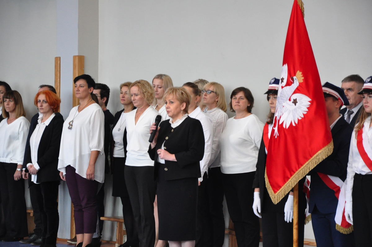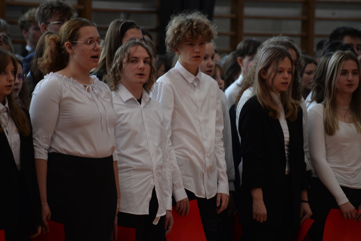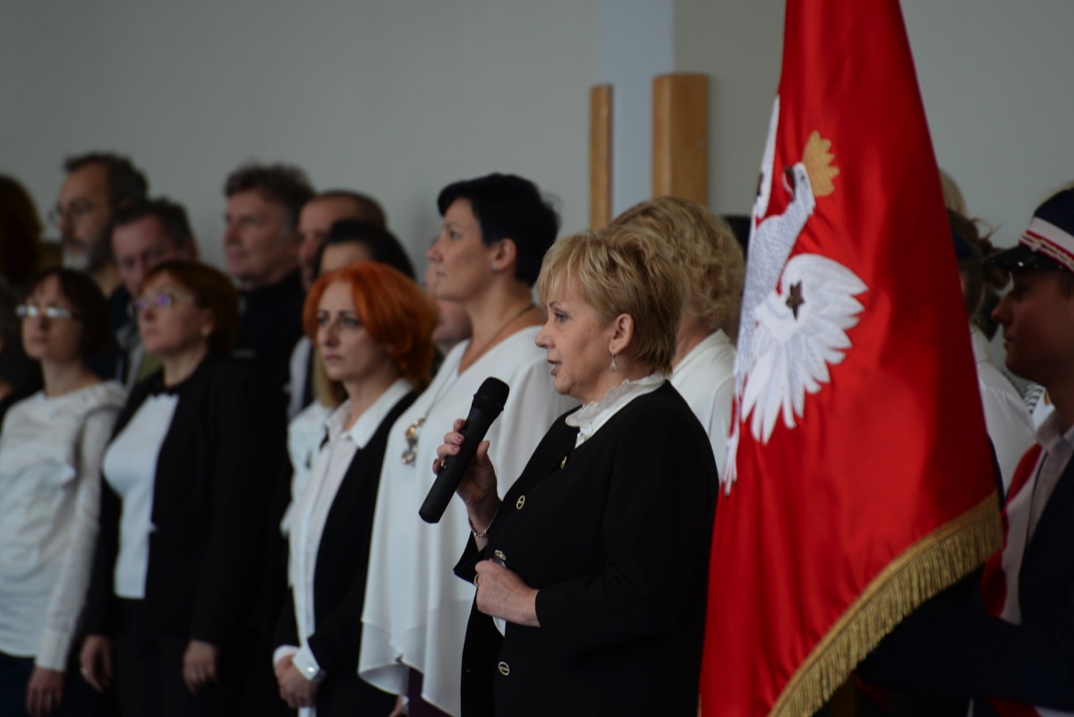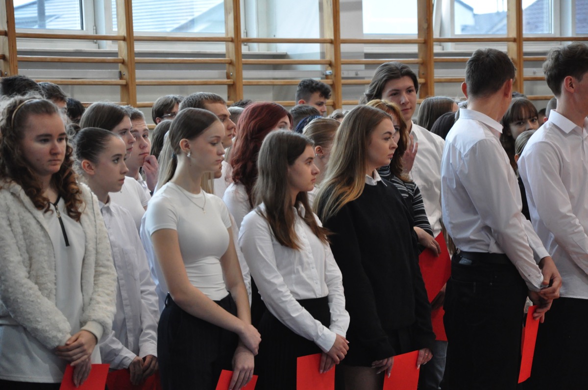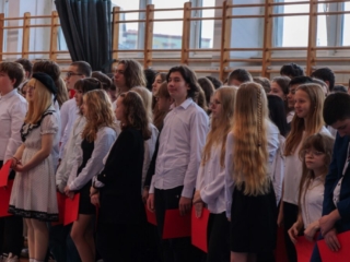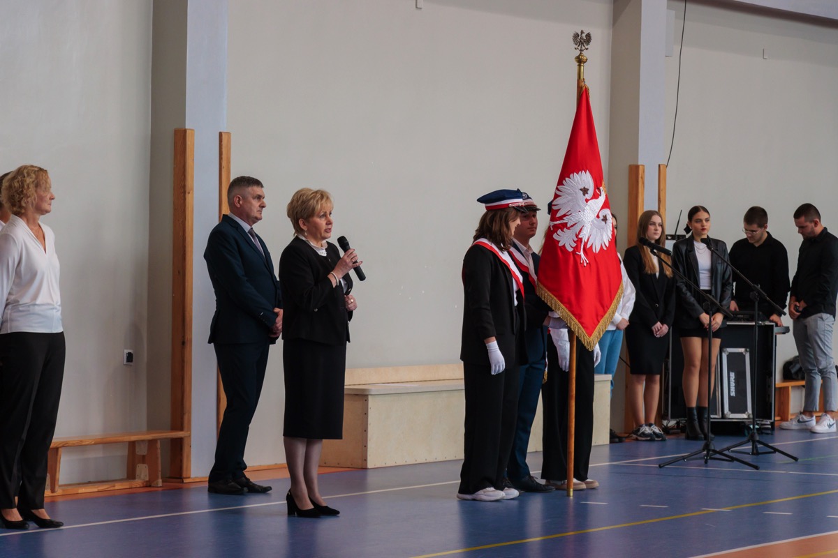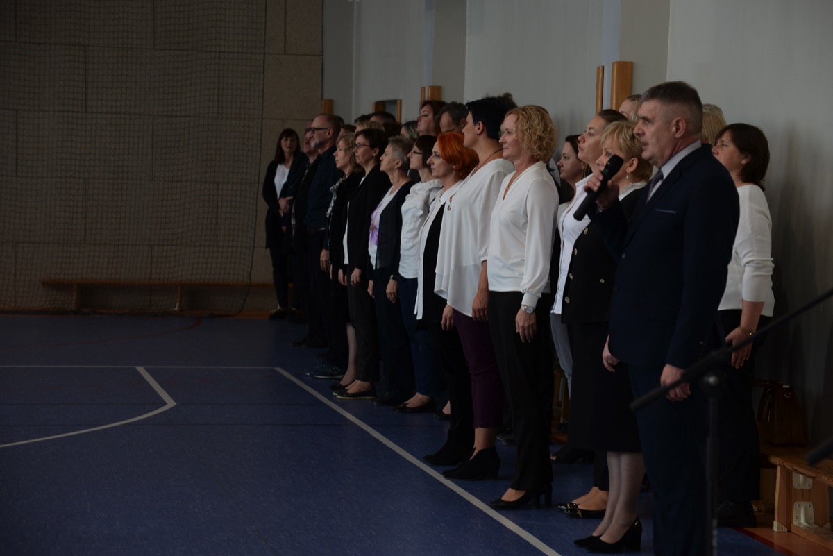 admin 2 lata temu Organizacyjne , UroczystościObchody 105. rocznicy odzyskania niepodległości w naszym liceum rozpoczęły się w przeddzień Narodowego Święta Niepodległości. 10 listopada 2023 roku społeczność szkolna o godz. 11.11 w hali gimnastycznej uroczyście odśpiewała hymn państwowy, po raz kolejny przyłączając się do ogólnopolskiej akcji organizowanej przez Ministerstwo Edukacji Narodowej „Szkoła do hymnu”. „Mazurek Dąbrowskiego”, który pięknie wybrzmiał w murach szkoły, a także biało-czerwona flaga utworzona przez uczniów wprowadziły nas w nastrój święta patriotycznego i uświadomiły, jak ważne w dziejach narodu polskiego było odzyskanie niepodległości.