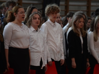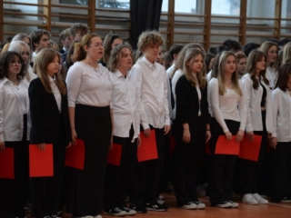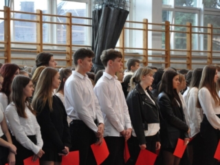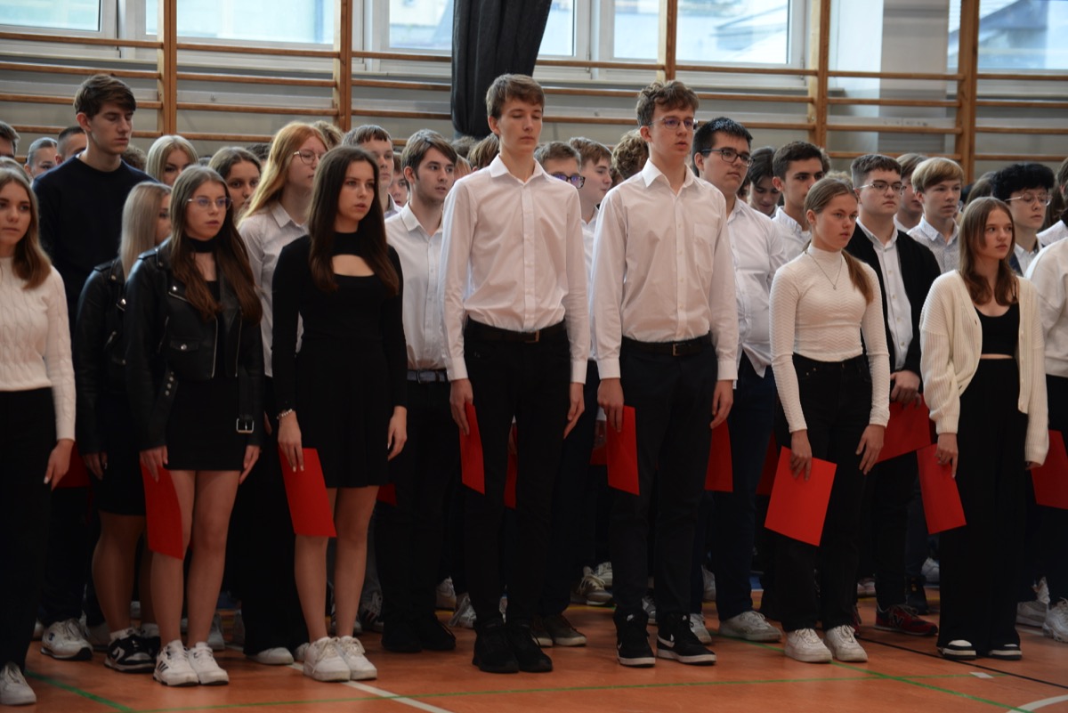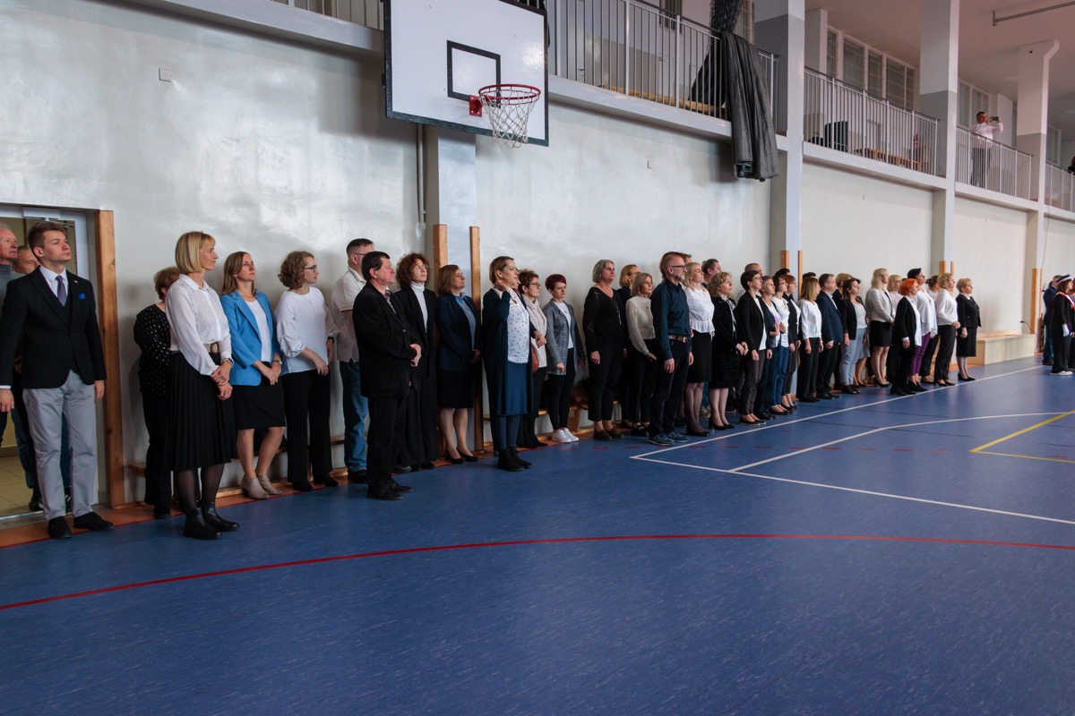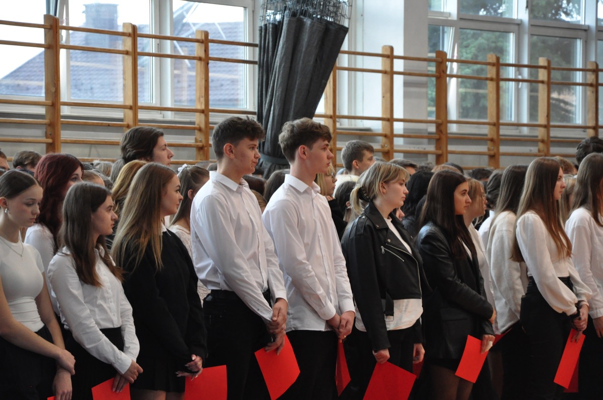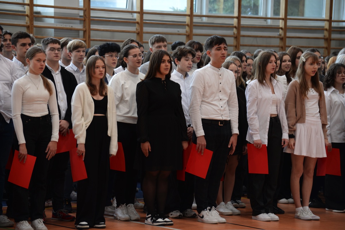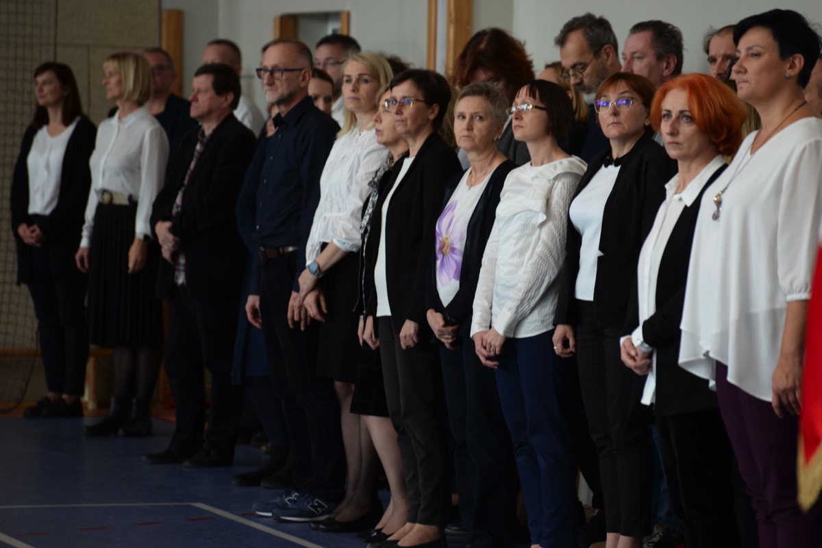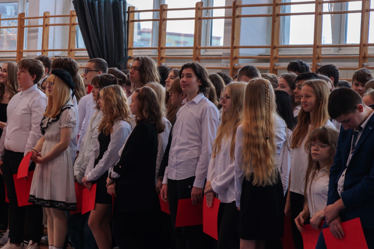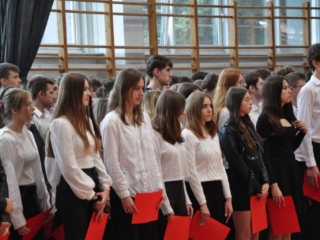 admin 2 lata temu Organizacyjne , UroczystościObchody 105. rocznicy odzyskania niepodległości w naszym liceum rozpoczęły się w przeddzień Narodowego Święta Niepodległości. 10 listopada 2023 roku społeczność szkolna o godz. 11.11 w hali gimnastycznej uroczyście odśpiewała hymn państwowy, po raz kolejny przyłączając się do ogólnopolskiej akcji organizowanej przez Ministerstwo Edukacji Narodowej „Szkoła do hymnu”. „Mazurek Dąbrowskiego”, który pięknie wybrzmiał w murach szkoły, a także biało-czerwona flaga utworzona przez uczniów wprowadziły nas w nastrój święta patriotycznego i uświadomiły, jak ważne w dziejach narodu polskiego było odzyskanie niepodległości.