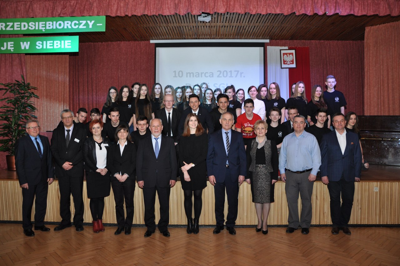10 marca 2017 r. w LO im. ONZ, w ramach Dnia Szkoły Głównej Handlowej, odbyła się konferencja naukowa pod hasłem „Jestem przedsiębiorczy – inwestuję w siebie”. Wydarzenie zostało zorganizowane w ramach programu „Klasa akademicka SGH”, realizowanego przez jedną z najbardziej prestiżowych uczelni w kraju, którym objęte są dwie klasy: III E i I C. W spotkaniu udział wzięli: pani Ewa Pączek – doktorantka SGH w Warszawie, pan Kazimierz Paterak– Starosta Biłgorajski, przedstawiciele Banku Pekao S.A. w Biłgoraju: pani Marta Daniłowicz, pani Anna Pieczykolan i pan Jerzy Grela, pan Kazimierz Ordecki – przedsiębiorca, właściciel Hurtowni Materiałów Elektrycznych, nauczyciele i uczniowie naszego Liceum. Przybyłych gości powitał pan dyrektor Marian Klecha, a dalszą część poprowadzili uczniowie klasy I C – gospodarze spotkania.