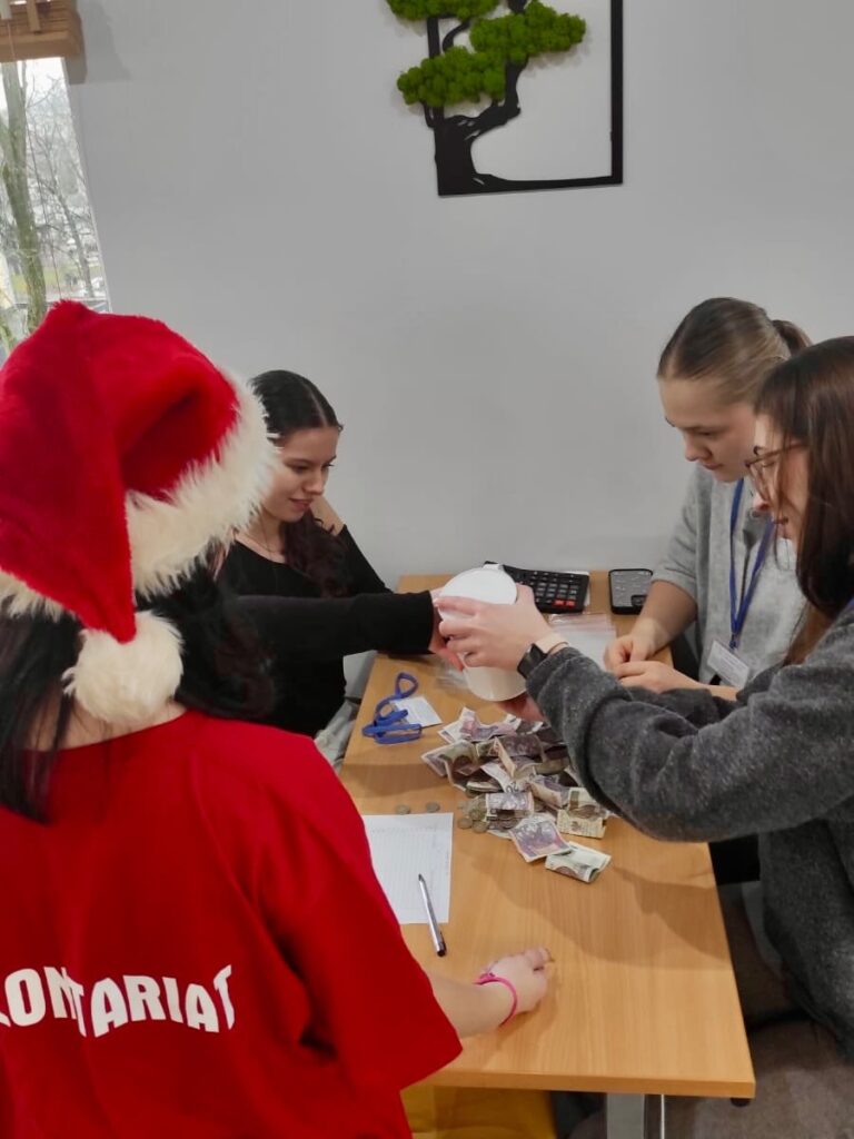 ​W dniu 11 grudnia 2025 roku na ulicach naszego miasta odbyła się mikołajkowa zbiórka Fundacji Fundusz Lokalny Ziemi Biłgorajskiej na stypendia dla zdolnej młodzieży. W tegorocznej akcji udział wzięło 90 wolontariuszy z biłgorajskich szkół, w tym 12 osób z I LO im ONZ. Nasi licealiści zebrali blisko 3 tysiące złotych, a środki te zostaną przeznaczone na wsparcie zdolnych i ambitnych uczniów z naszej szkoły, którzy znajdują się w trudnej sytuacji finansowej.​