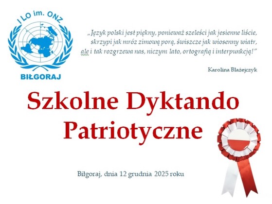 Laureaci otrzymali nagrody rzeczowe ufundowane przez Radę Rodziców, a wszyscy uczestnicy pamiątkowe dyplomy. Organizatorzy – nauczyciele języka polskiego – zapraszają do udziału w kolejnej edycji Szkolnego Dyktanda Patriotycznego w roku szkolnym 2026/2027.