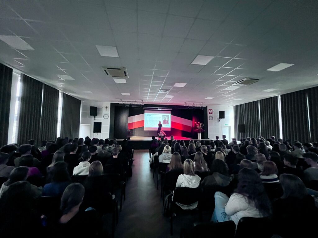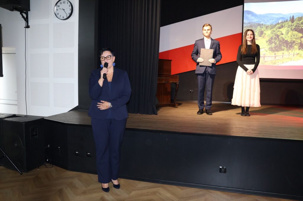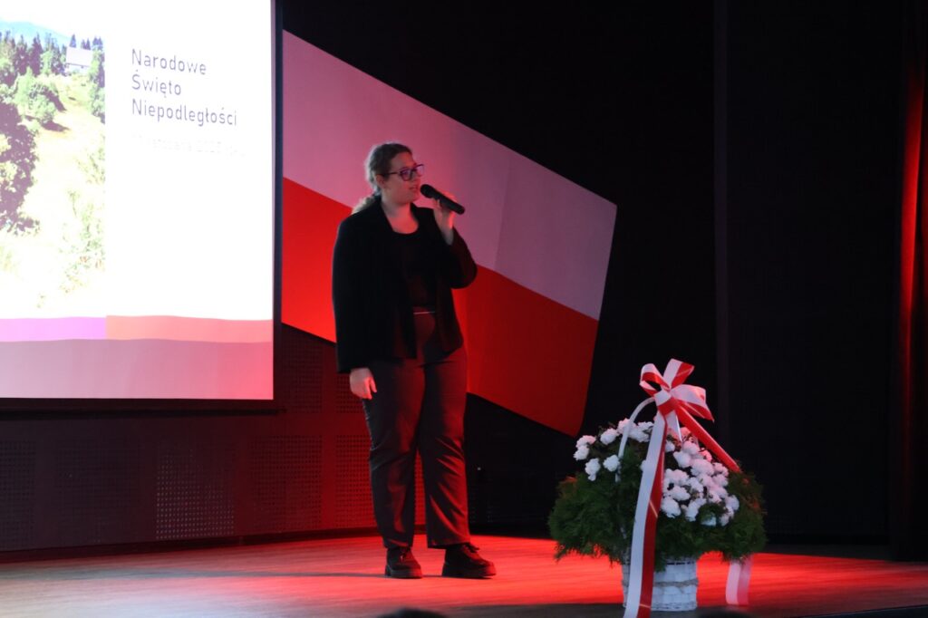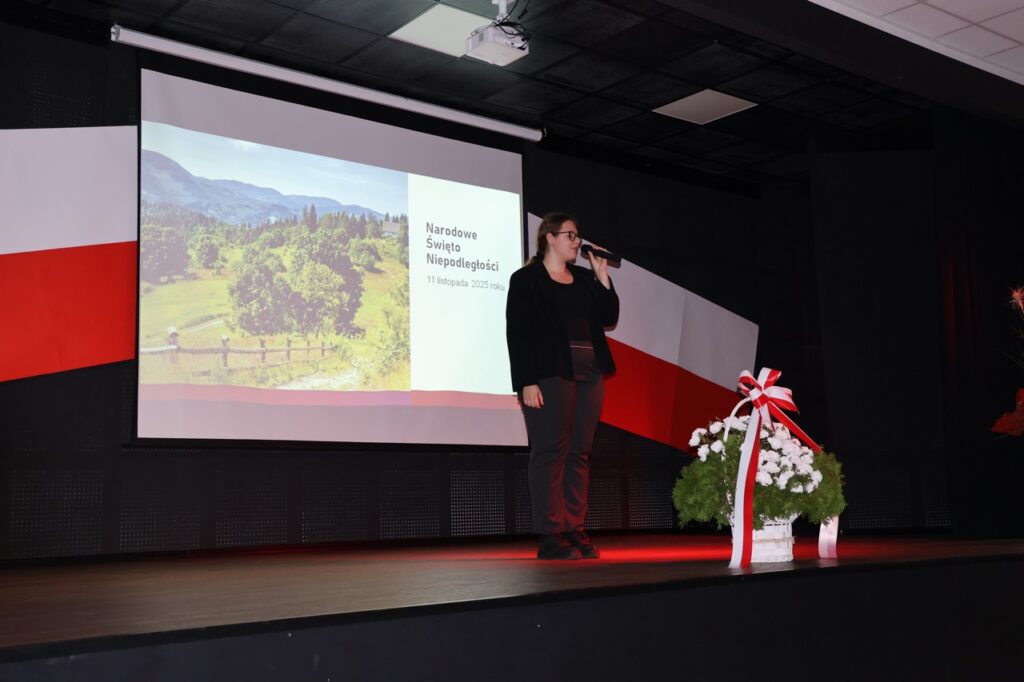 admin 5 miesięcy temu Organizacyjne , Uroczystości12 listopada 2025 roku w pięknie udekorowanej biało-czerwonymi barwami auli społeczność szkoły zgromadziła się, aby kontynuować obchody Narodowego Święta Niepodległości, zapoczątkowanego wspólnym śpiewaniem „Mazurka Dąbrowskiego”. Akademia poświęcona była zaangażowaniu narodu polskiego w walkę o odzyskanie suwerenności. Młodzież podkreślała, że w tym najtrudniejszym dla naszej ojczyzny czasie ważna była nie tylko walka z bronią w ręku, ale też m.in. codzienny wysiłek matek i ojców, by dzieci mówiły po polsku, zaangażowanie nauczycieli, aby młodzież wbrew zakazom czytała polskie książki czy wkład artystów w utrwalanie dawnej świetności Polski. Często pomijaną i nieoczywistą walką o niepodległość był także wysiłek polskich chłopów, przedsiębiorców oraz wszystkich, którzy dążyli do wolniej ojczyzny. Artyści skierowali do młodzieży apel, aby w czasie pokoju każdy na miarę swoich możliwości troszczył się o Polskę, szanował symbole narodowe, kultywował tradycje i zwyczaje, dbał o środowisko, pamiętał o przodkach, uczył się i pracował.