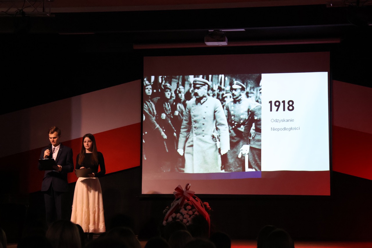 Wspólne świętowanie odzyskania niepodległości było czasem refleksji nad wartością niepodległości, patriotyzmu i wspólnoty narodowej. W akademii wystąpili: Malwina Białas (III F), Klaudia Horodko (IV D), Antoni Jagusztyn (IV F), Mateusz Kowalik (III C), Karol Kozdra (III C) oraz Gabriela Rapa (IV E). Młodzież pracowała po kierunkiem: pani Elżbiety Ciryt, pani Jadwigi Oleszek i pana Krzysztofa Rudy.