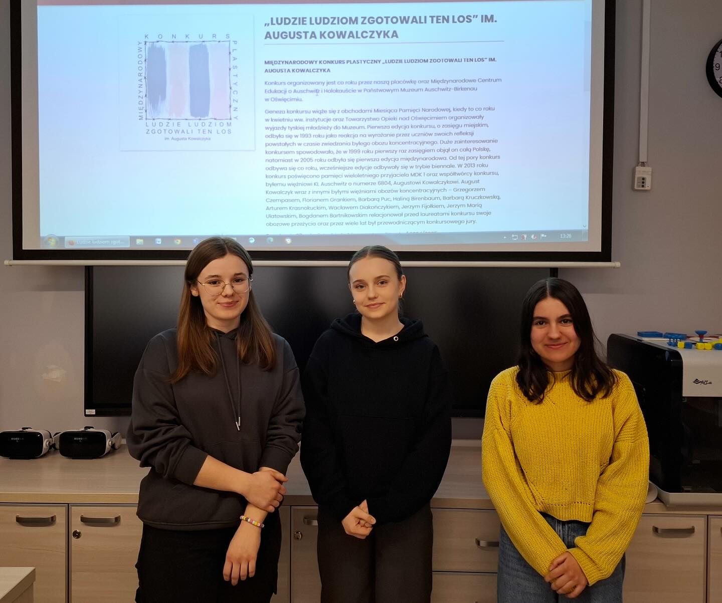 admin 1 rok temu Konkursy , Organizacyjne , OsiągnięciaEmilia Niemiec (kl. III A) otrzymała wyróżnienie, a Izabela Malec (kl. III A) i Karolina Rawska (kl. III A) kwalifikację do wystawy w XXVII Międzynarodowym Konkursie Plastycznym „Ludzie ludziom zgotowali ten los” im. Augusta Kowalczyka, który zorganizowany został przez Młodzieżowy Dom Kultury nr 1 im. Artystów Rodu Kossaków w Tychach oraz Międzynarodowe Centrum Edukacji o Auschwitz i Holokauście w Państwowym Muzeum Auschwitz-Birkenau pod honorowym patronatem Ministerstwa Edukacji.Obecna edycja zorganizowana została w 80. rocznicę wyzwolenia niemieckiego nazistowskiego obozu koncentracyjnego Auschwitz i dotyczyła słów św. Maksymiliana Marii Kolbego, więźnia KL Auschwitz – „Obojętność jest największą zarazą naszych czasów”.Głównym celem konkursu jest szerzenie wiedzy historycznej oraz upamiętnianie Ofiar i kultywowanie szacunku dla narodów, których udziałem była masowa Zagłada.