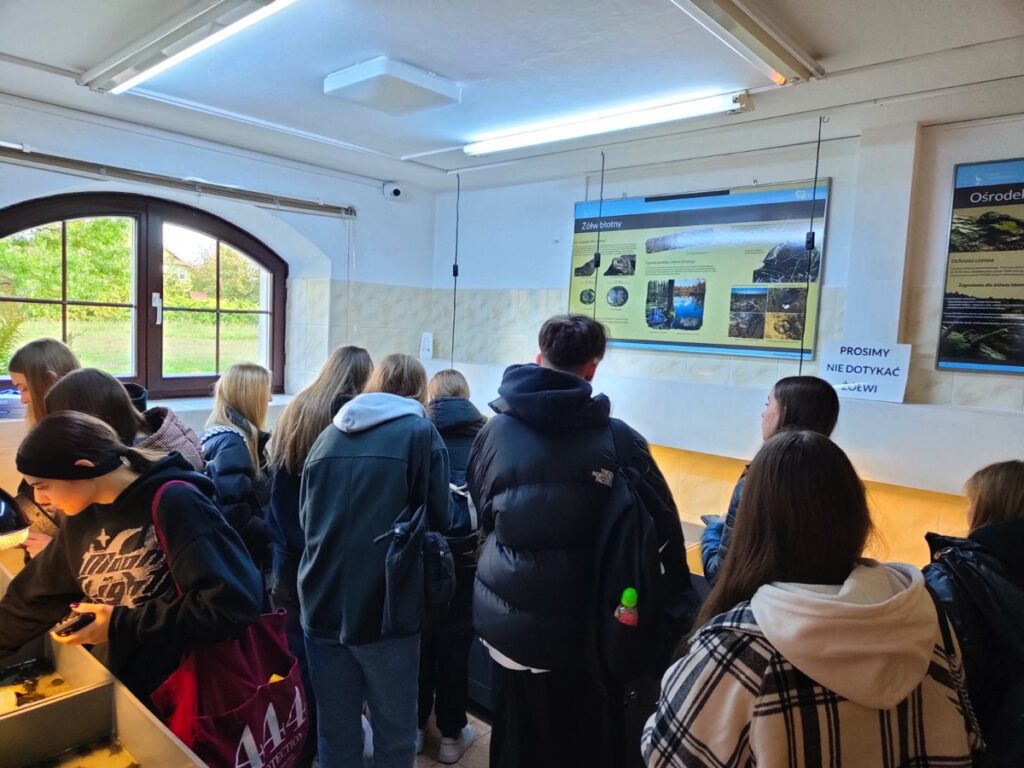 admin 2 lata temu Organizacyjne , WycieczkiKolejna grupa naszych licealistów, tym razem z kl. II F, zachwycała się przyrodą Poleskiego Parku Narodowego podczas wycieczki zorganizowanej 10 października 2023 roku. W towarzystwie przewodnika uczniowie odbyli ponadtrzykilometrową trasę ścieżką przyrodniczą „Dąb Dominik”. Po drodze obserwowali zarastające Jezioro Moszne: torfowisko przejściowe – pło (spleję), torfianki, bór bagienny, ols kępkowo-dolinkowy i lasy grądowe. Odwiedzili też Ośrodek Rehabilitacji Zwierząt, w którym przebywają dzikie zwierzęta potrzebujące pomocy. Z kolei w Muzeum Poleskiego Parku Narodowego oglądali ekspozycje przyrodnicze i historyczne oraz dział etnograficzny – „Poleska Chata”. Duże zainteresowanie naszej młodzieży wzbudziła wizyta w Ośrodku Ochrony Żółwia Błotnego, gdzie licealiści z bliska zobaczyli hodowlę tych gadów w warunkach kontrolowanych przez człowieka oraz uzyskali wiele ciekawych informacji na temat programu ochrony żółwi.