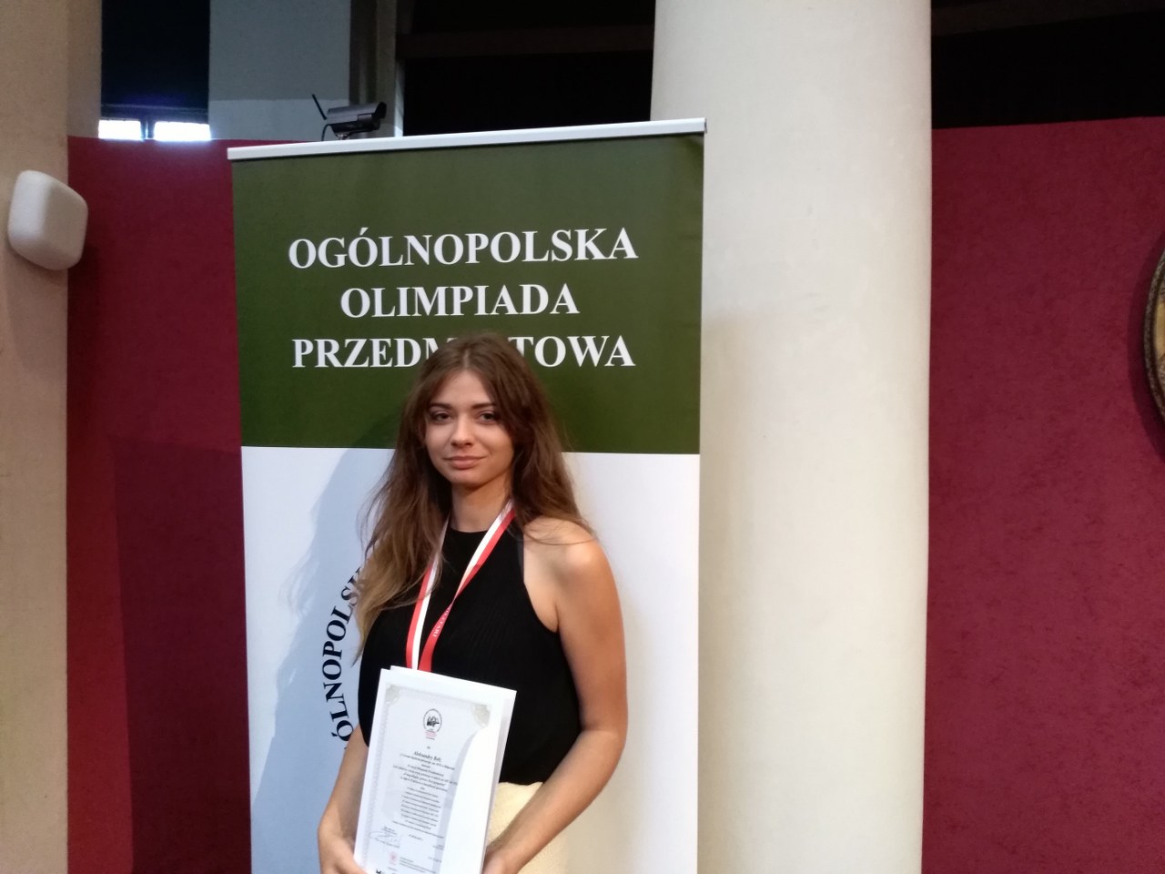 Uplasowanie się w pierwszej trójce Olimpiady to wielki sukces naszej koleżanki, który oprócz satysfakcji i potwierdzenia rozległej wiedzy historycznej daje również zwolnienie z egzaminu maturalnego z historii. Opiekunką Oli jest pani Renata Krzesińska.