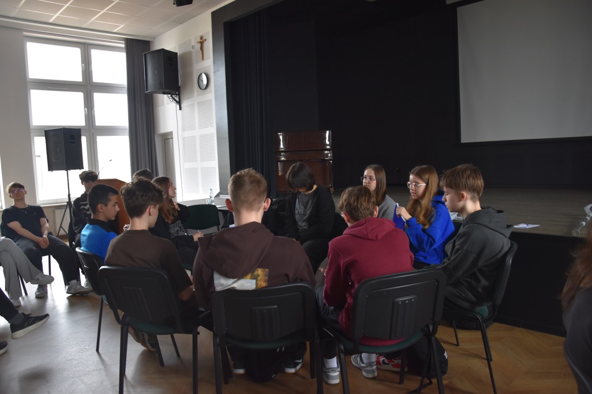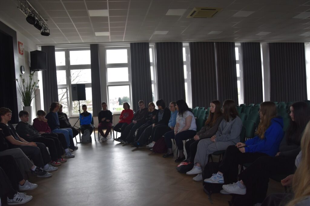 Tematyka warsztatów przeprowadzonych przez panią dr Ewę Trojanowską cieszyła się dużym zainteresowaniem młodzieży, co szczególnie widoczne było podczas ćwiczeń interaktywnych w grupach.