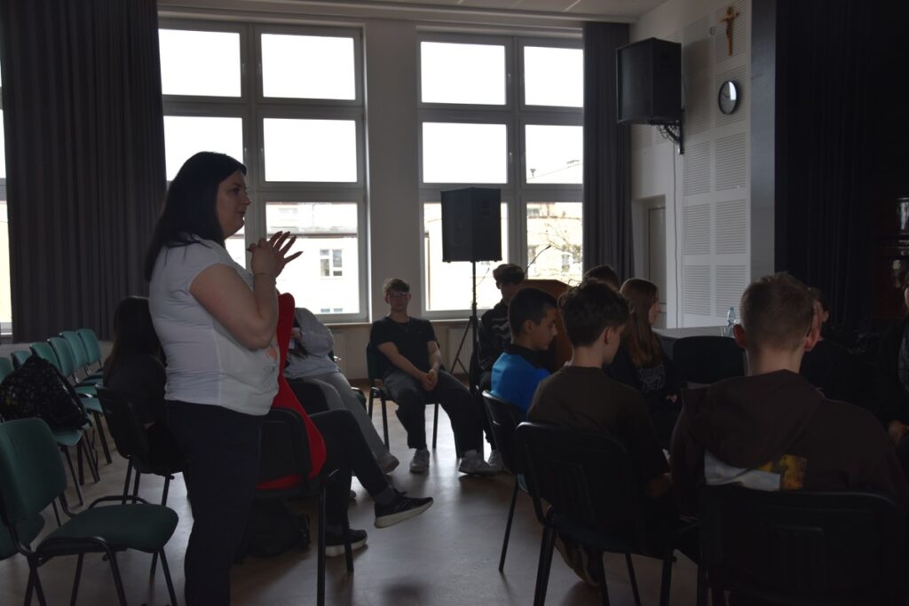 admin 2 lata temu Organizacyjne11 kwietnia 2024 roku w auli naszej szkoły odbyły się warsztaty profilaktyczne z panią dr Ewą Trojanowską, asystentem Katedry Pedagogiki Resocjalizacyjnej UMCS. Uczestniczyli w nich uczniowie klas pierwszych, drugich i trzecich. W czasie warsztatów zatytułowanych „Współczesne zagrożenia wśród młodzieży” prelegentka omawiała z licealistami konsekwencje różnych zachowań ryzykownych dotyczących m.in.: e – papierosów, alkoholu, narkotyków, internetu. Dr Trojanowska dużo czasu poświęciła uzależnieniom behawioralnym, zwłaszcza fonoholizmowi. Podkreśliła także potrzebę higieny cyfrowej podczas korzystania z telefonu komórkowego. Rozmawiała również z uczniami o fałszywych przekonaniach na temat zagrożeń oraz potrzebie wypracowania umiejętności radzenia sobie z trudnymi emocjami w życiu.