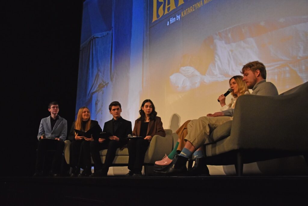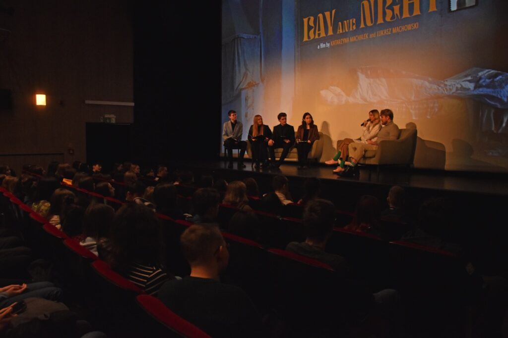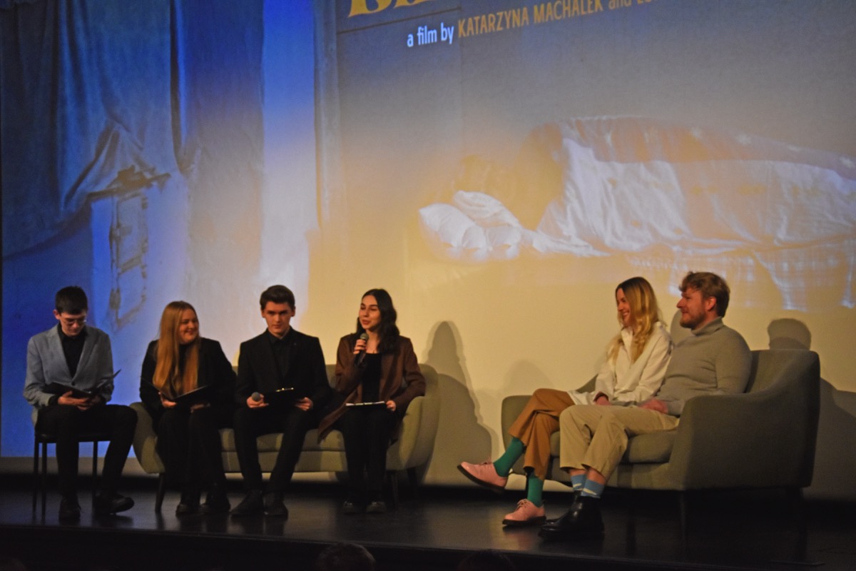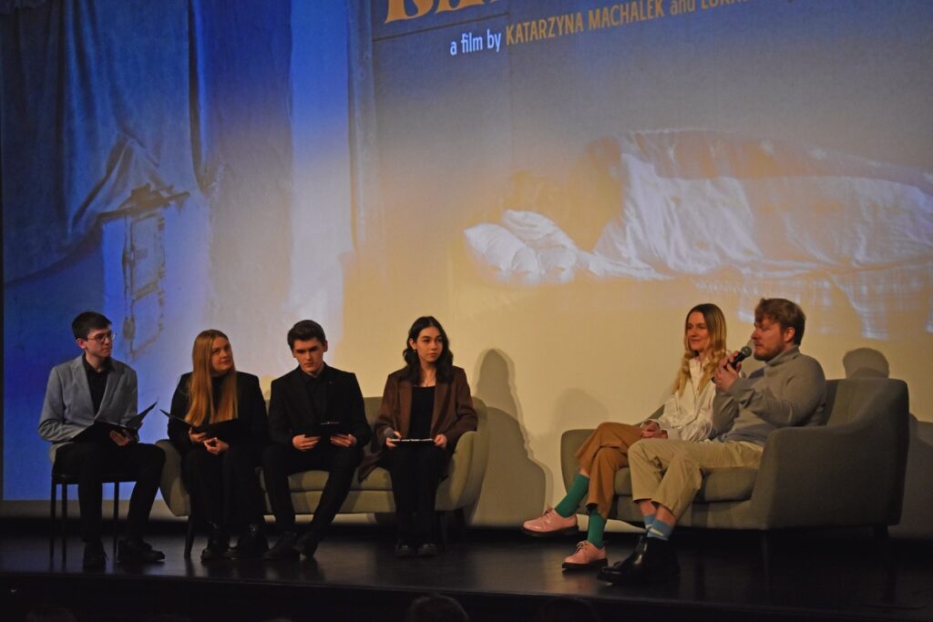 Przed projekcją w sali kinowej BCK Natalia Pawełko, Natalia Samulak, Miłosz Stelmach i Maciej Bukarewicz profesjonalnie prowadzili rozmowę z twórcami o pracy nad filmem, nagrodach filmowych, projektach kinowych i wystawach malarskich oraz planach na przyszłość młodych reżyserów. Zebrani na sali z uwagą wysłuchali interpretacji autorskiej filmu, która pomogła zrozumieć trudniejsze zagadnienia przedstawione w obrazie filmowym. Ponadto miłą atmosferę podkreślał fakt, że pani Katarzyna Machałek jest absolwentką I LO im. ONZ i wspominała czas spędzony w szkole, pozdrowiła swoich nauczycieli.