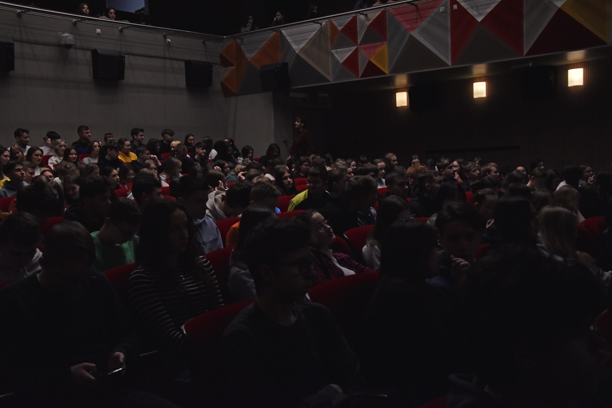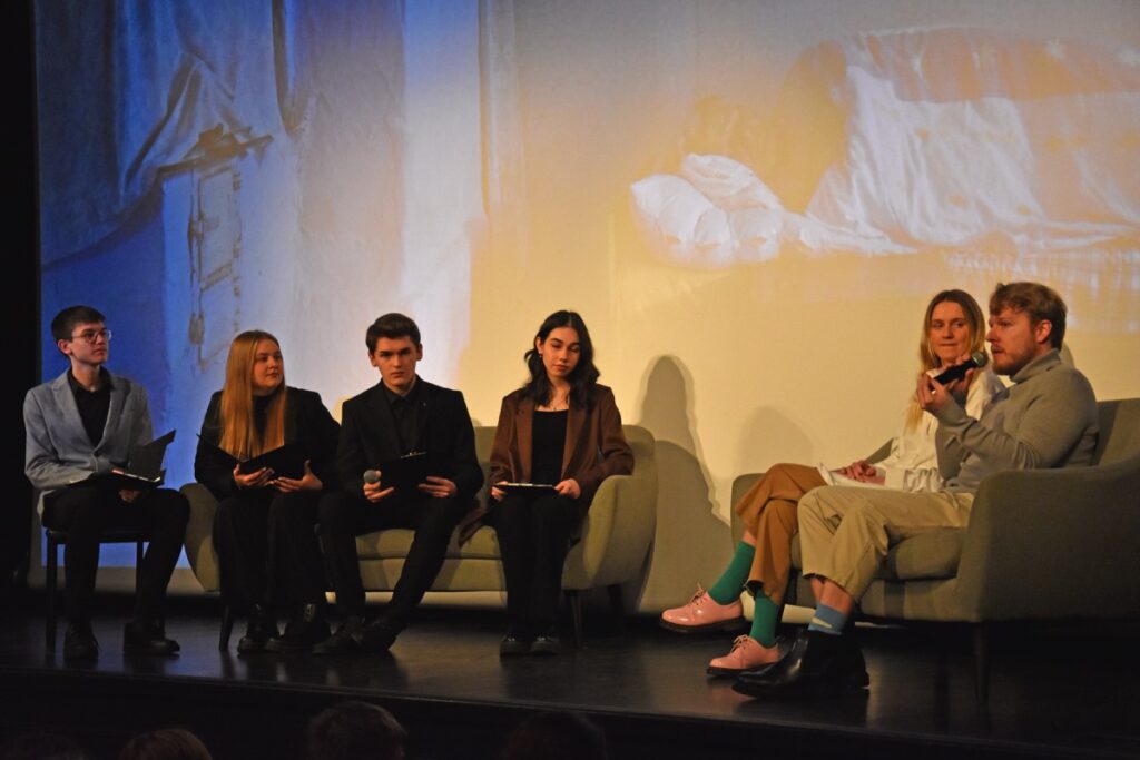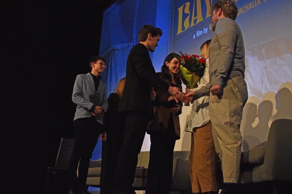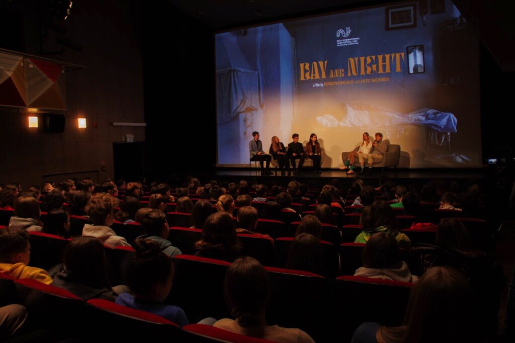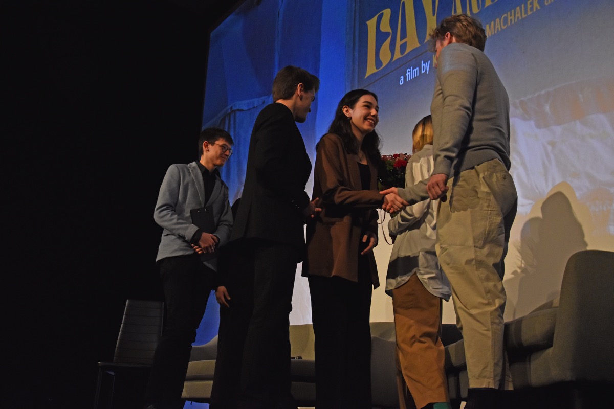 Przed projekcją w sali kinowej BCK Natalia Pawełko, Natalia Samulak, Miłosz Stelmach i Maciej Bukarewicz profesjonalnie prowadzili rozmowę z twórcami o pracy nad filmem, nagrodach filmowych, projektach kinowych i wystawach malarskich oraz planach na przyszłość młodych reżyserów. Zebrani na sali z uwagą wysłuchali interpretacji autorskiej filmu, która pomogła zrozumieć trudniejsze zagadnienia przedstawione w obrazie filmowym. Ponadto miłą atmosferę podkreślał fakt, że pani Katarzyna Machałek jest absolwentką I LO im. ONZ i wspominała czas spędzony w szkole, pozdrowiła swoich nauczycieli.
