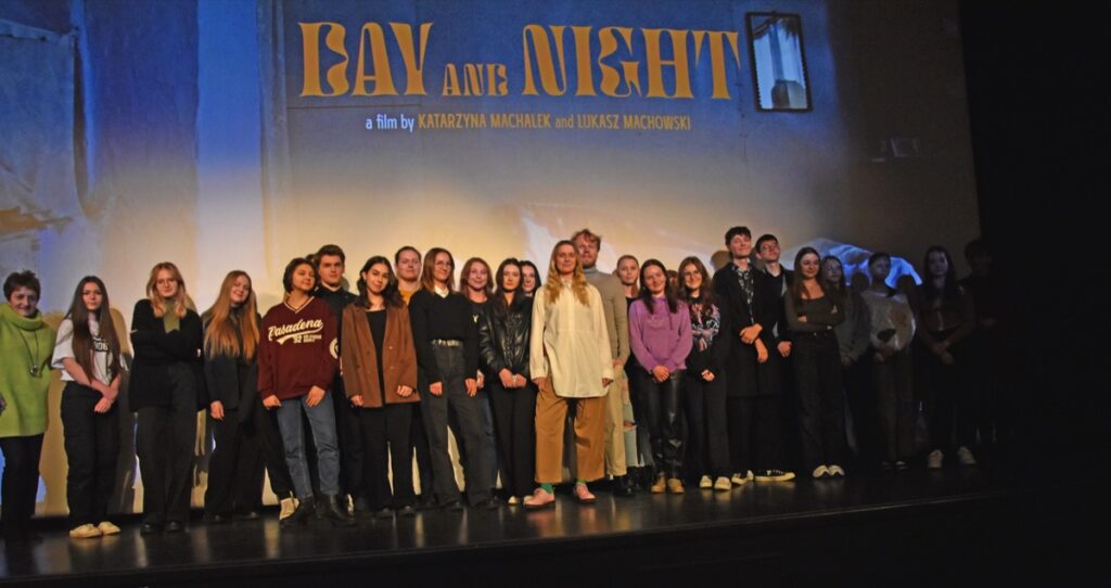 admin 3 lata temu OrganizacyjneUczniowie I Liceum Ogólnokształcącego im. ONZ wraz z członkami Szkolnego Klubu Filmowego mieli przyjemność spotkać się z reżyserami eksperymentalnego narracyjnie filmu „Dzień i Noc” – Katarzyną Machałek i Łukaszem Machowskim, którzy realizują projekty artystyczne na całym świecie, w tym w Nowym Jorku, Finlandii czy w Chinach. Tym razem „powrócili do korzeni” i prezentowali przed biłgorajską publicznością fabularno-dokumentalny obraz filmowy o dawnych zwyczajach, bogatej kulturze regionu i przyjaźni kobiet z Roztocza.