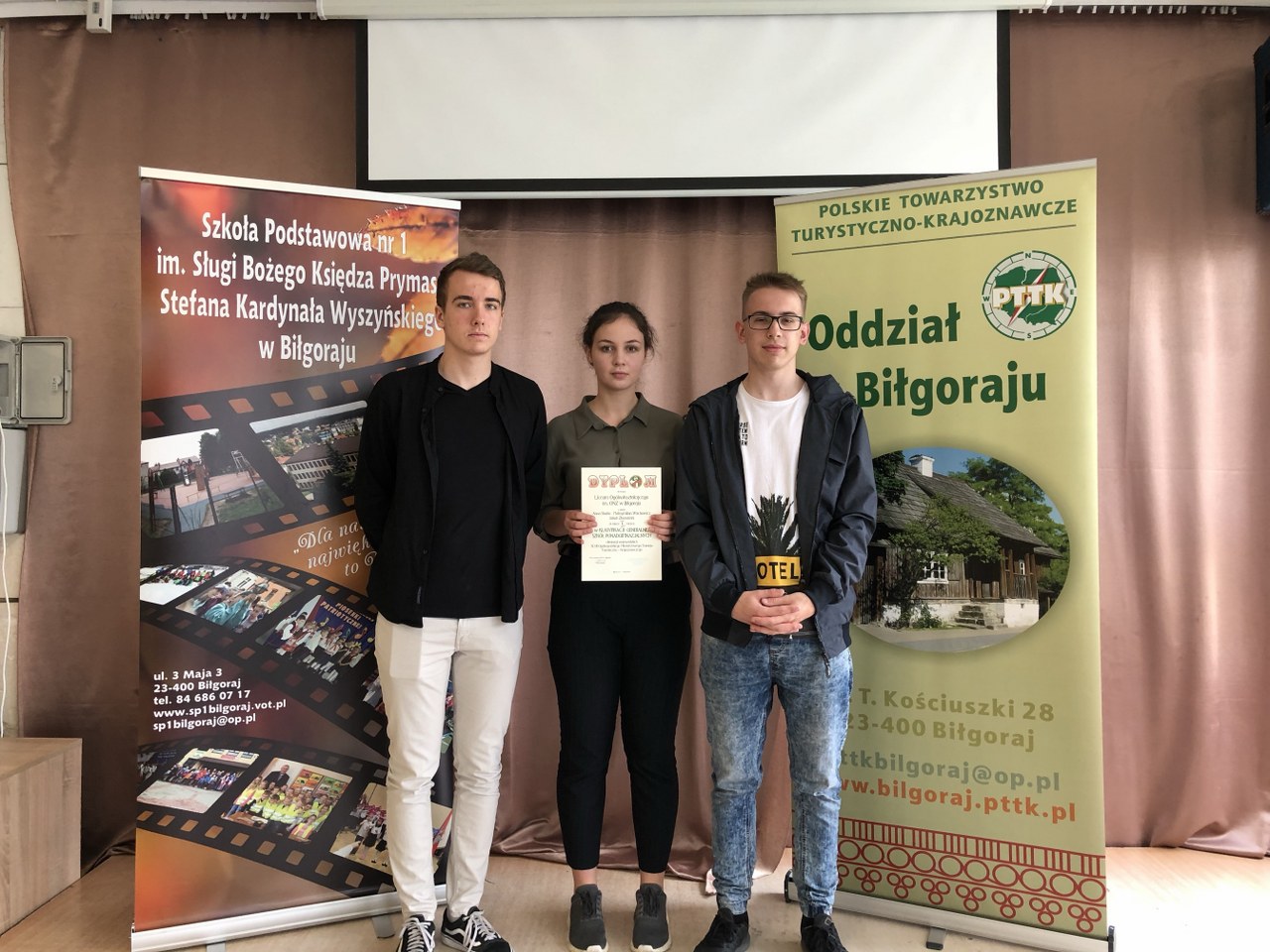 W Finale Wojewódzkim XLVII OMTTK PTTK w Biłgoraju wzięły udział trzy drużyny z naszej szkoły. W kategorii Gimnazjów 1. Miejsce w klasyfikacji generalnej zajęła drużyna uczniów klasy 3gA w składzie: Julia Rębacz, Konrad Deryło i Szymon Krzesiński. W kategorii Szkół średnich tytuł Mistrzów Województwa zdobyli Anna Skubis (1C), Maksymilian Wachowicz (2C) i Jakub Złomański (2C). Na podium wśród liceów stanęli także Michał Kleban (1C), Martyna Koman i Nela Fusiarz (1D). Zwycięzcy poszczególnych kategorii uzyskali awans do Finału Centralnego, który odbędzie się w dniach 30.05 – 2.06.2019 w Augustowie (woj. podlaskie). Jest to ogromny sukces ponieważ ostatni raz nasza szkoła rywalizowała o medale Mistrzostw Polski podczas finału centralnego w Elblągu w 2013 roku.