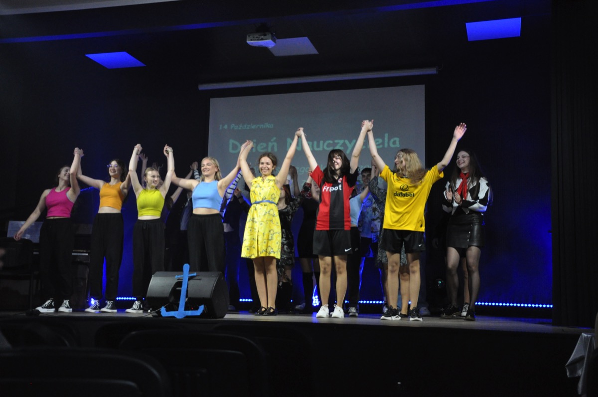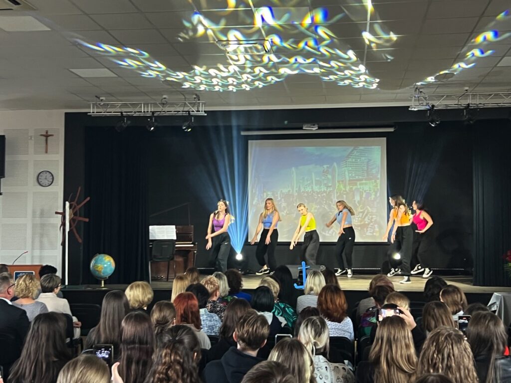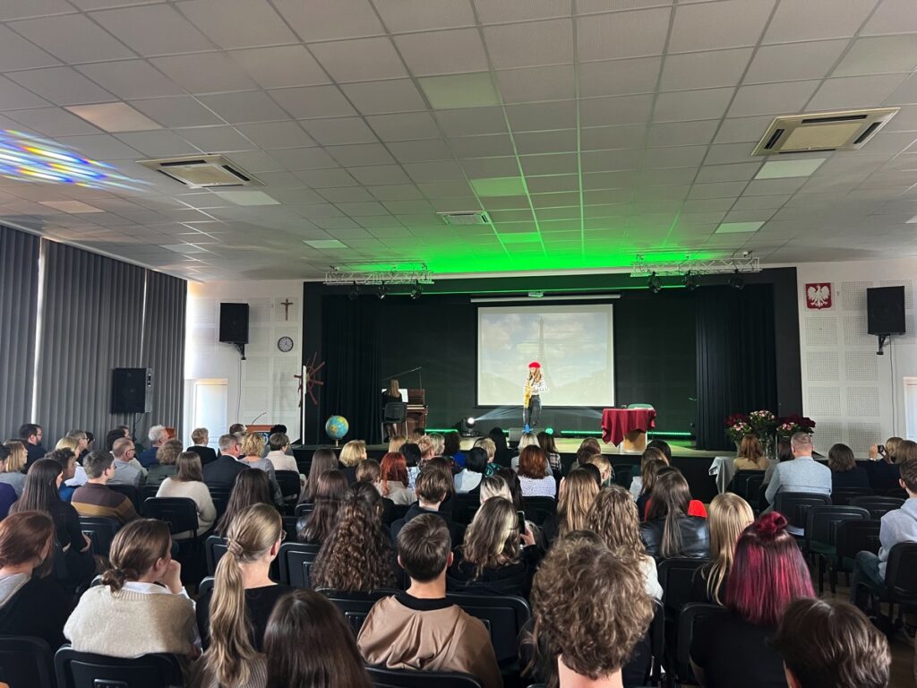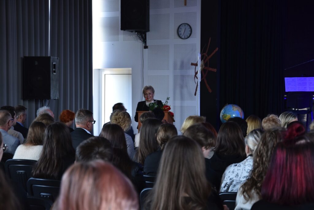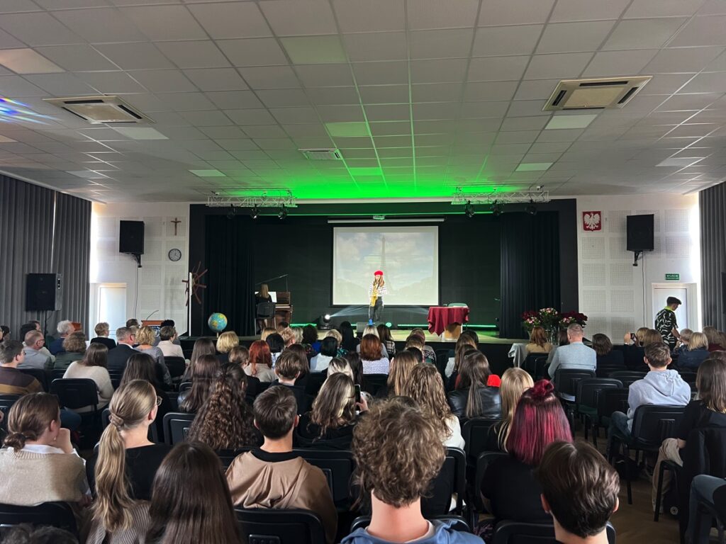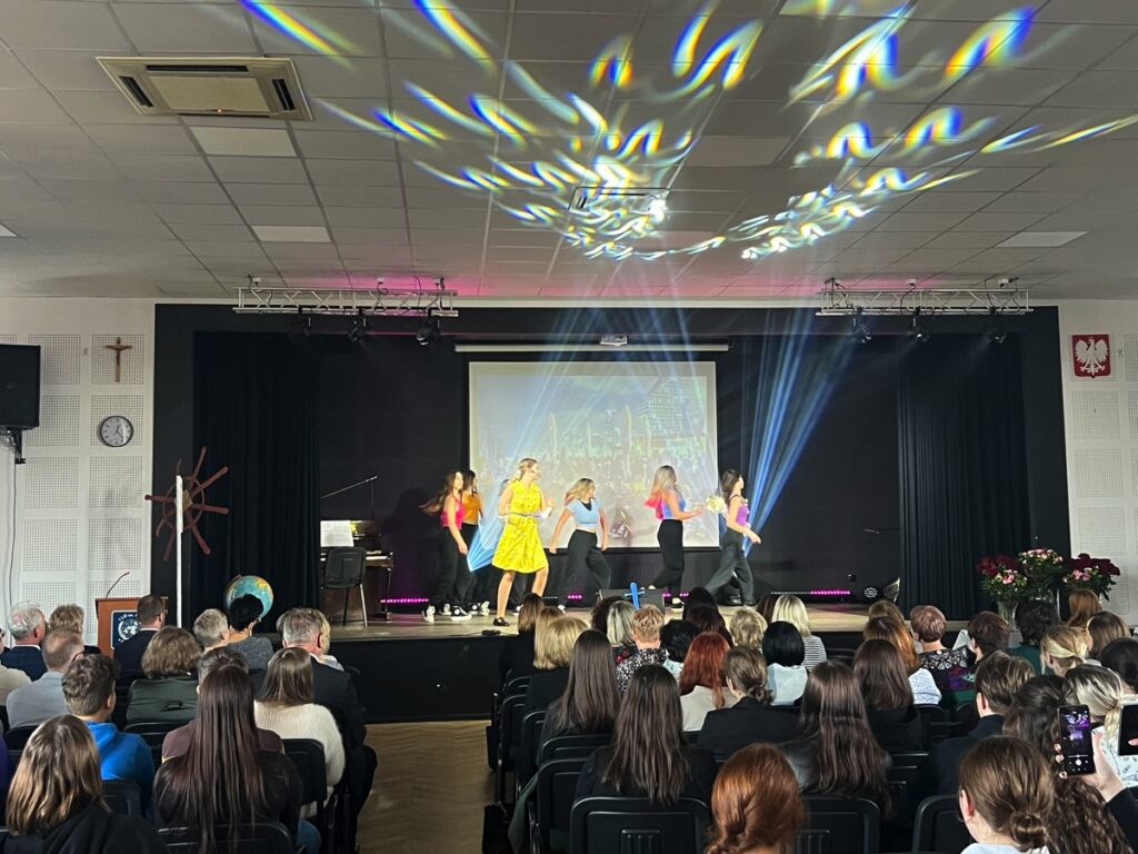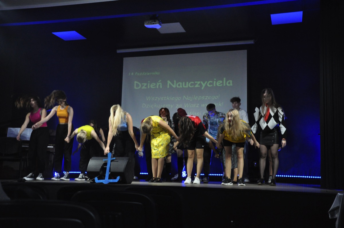 13 października 2022 roku w auli społeczność szkolna świętowała Dzień Edukacji Narodowej. Z tej okazji nie zabrakło serdecznych życzeń, wyrazów uznania i podziękowań za trud włożony w edukację i wychowanie młodzieży. Swoją wdzięczność wyrazili zarówno uczniowie, jak i rodzice. W ich w imieniu życzenia złożył Przewodniczący Rady Rodziców Jarosław Świtała. Podziękowania dla pedagogów licealiści wyrazili również w przygotowanej części artystycznej, która z przymrużeniem oka, nawiązując do pracy nauczycieli, wywoływała nie tylko uśmiech na twarzy, ale skłaniała również do refleksji.