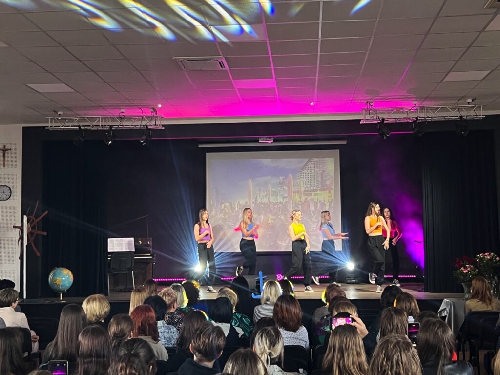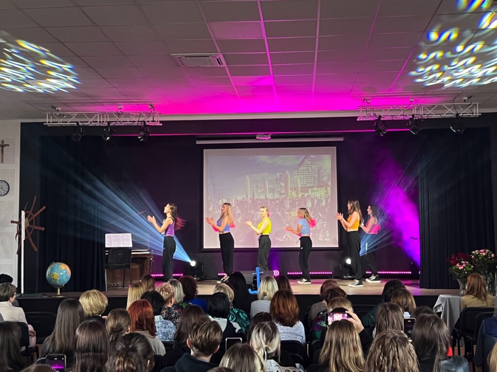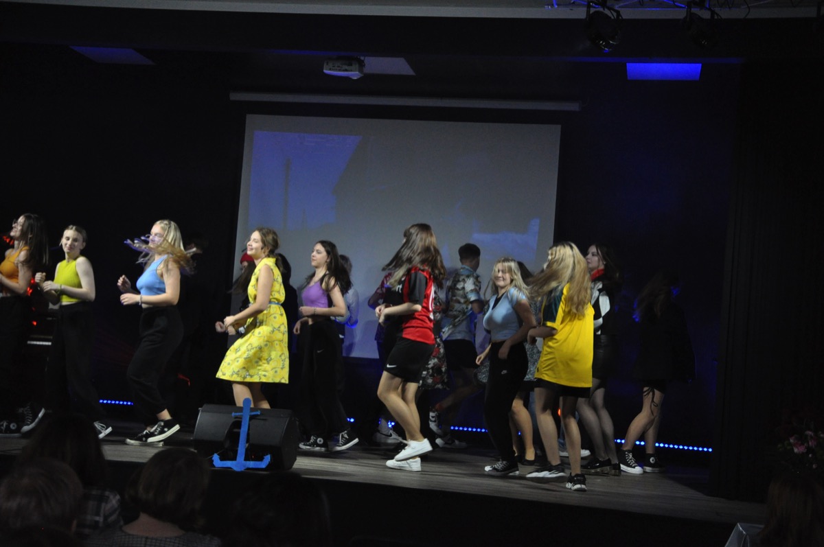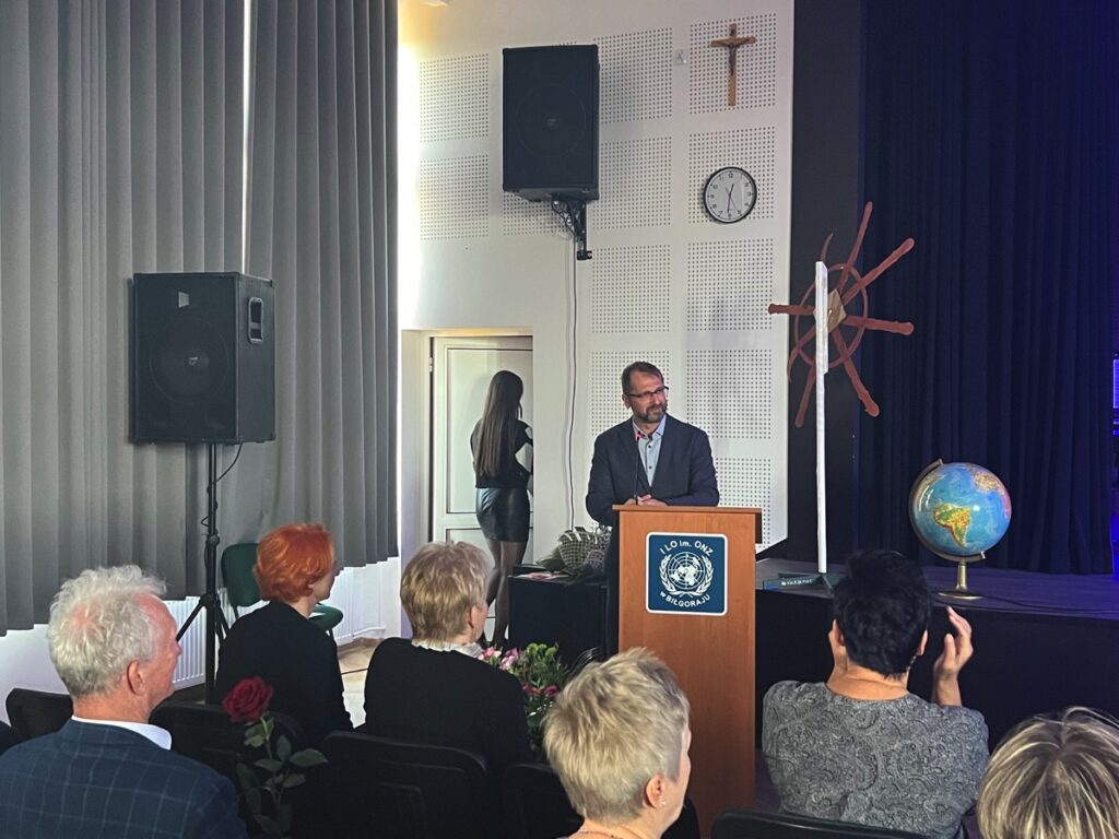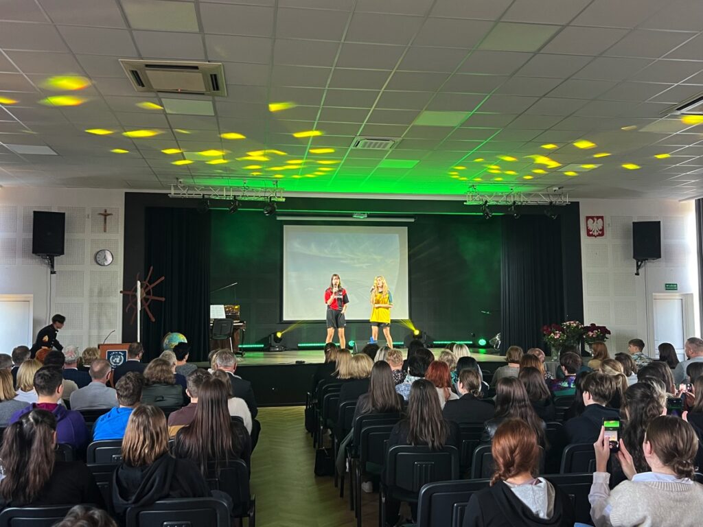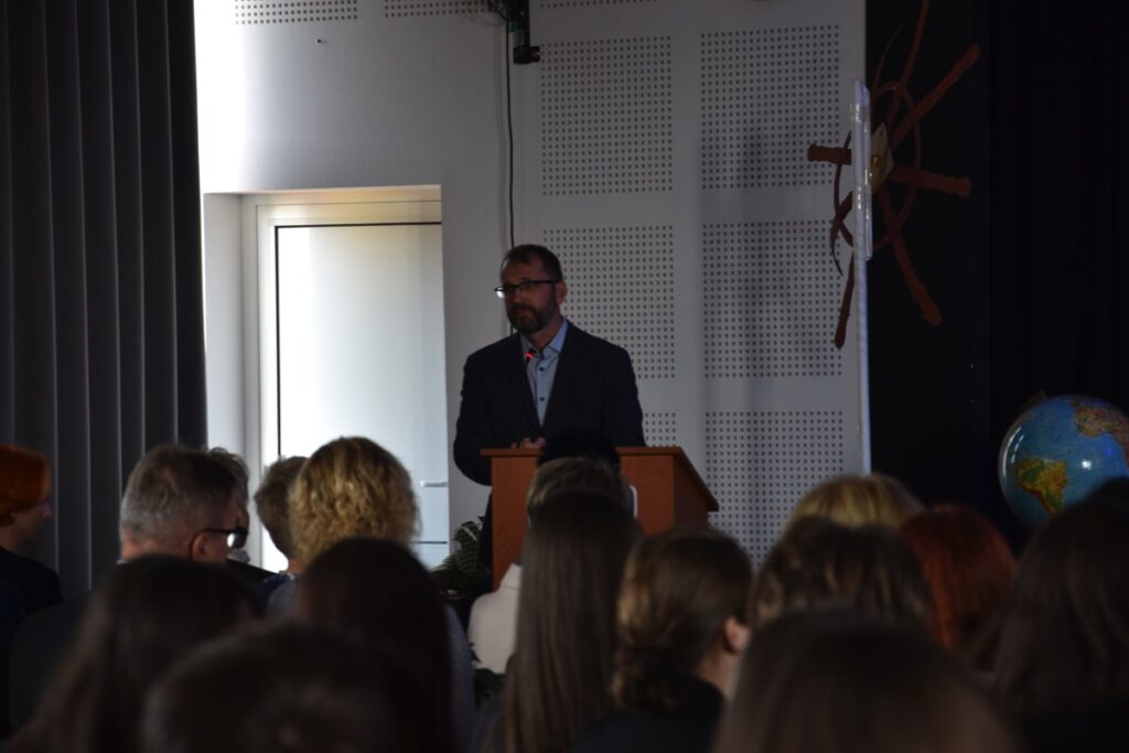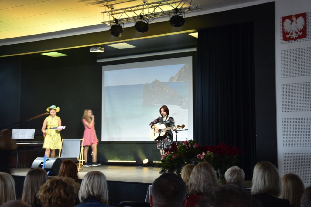 13 października 2022 roku w auli społeczność szkolna świętowała Dzień Edukacji Narodowej. Z tej okazji nie zabrakło serdecznych życzeń, wyrazów uznania i podziękowań za trud włożony w edukację i wychowanie młodzieży. Swoją wdzięczność wyrazili zarówno uczniowie, jak i rodzice. W ich w imieniu życzenia złożył Przewodniczący Rady Rodziców Jarosław Świtała. Podziękowania dla pedagogów licealiści wyrazili również w przygotowanej części artystycznej, która z przymrużeniem oka, nawiązując do pracy nauczycieli, wywoływała nie tylko uśmiech na twarzy, ale skłaniała również do refleksji.