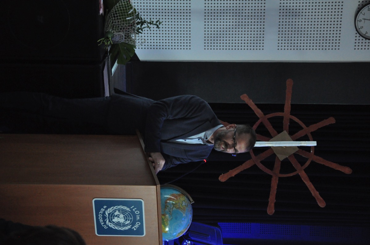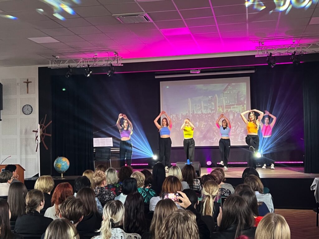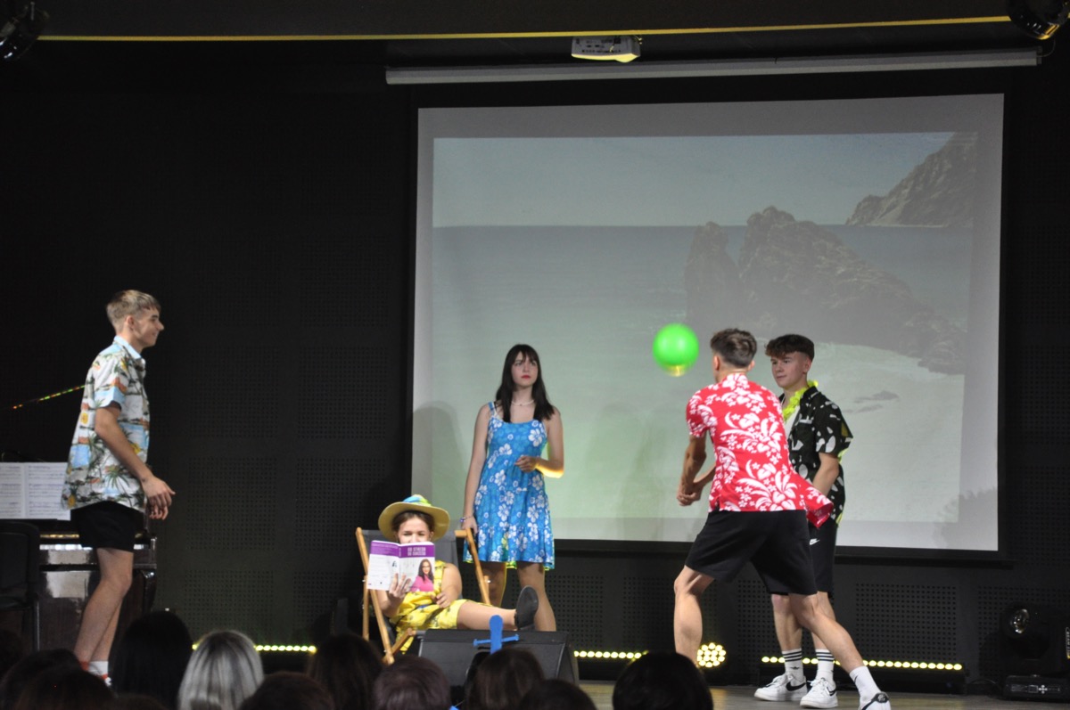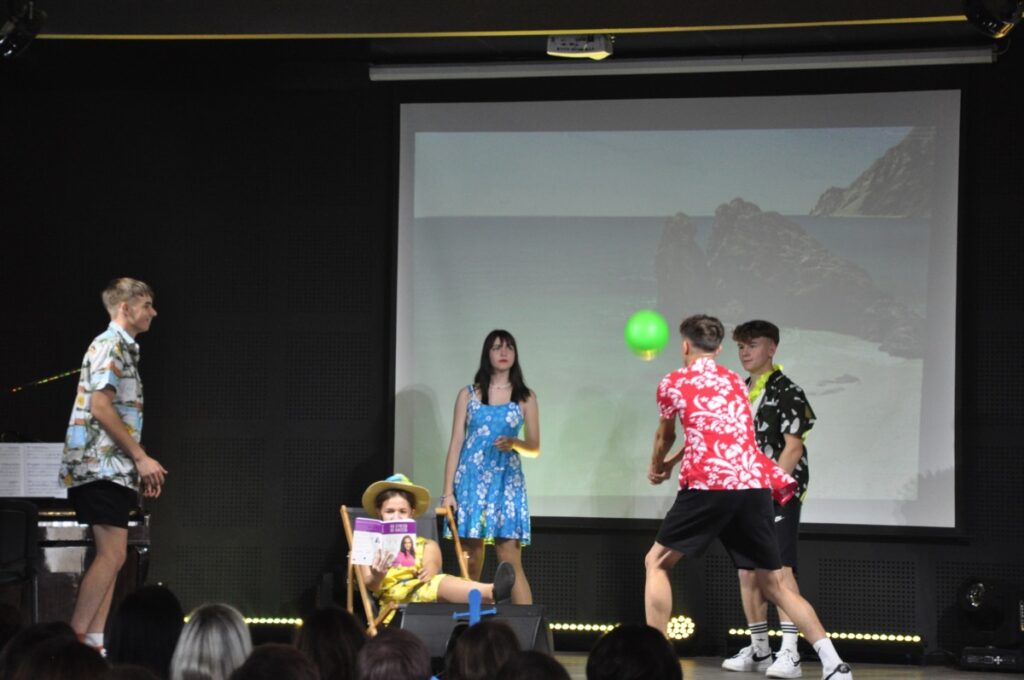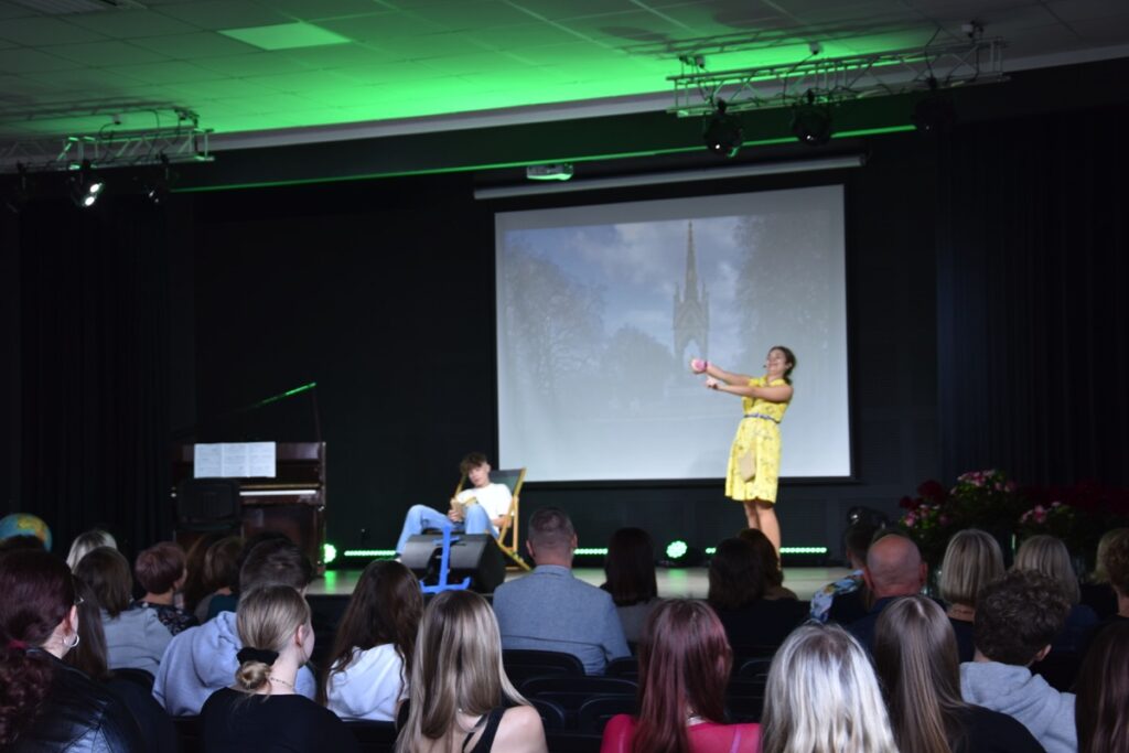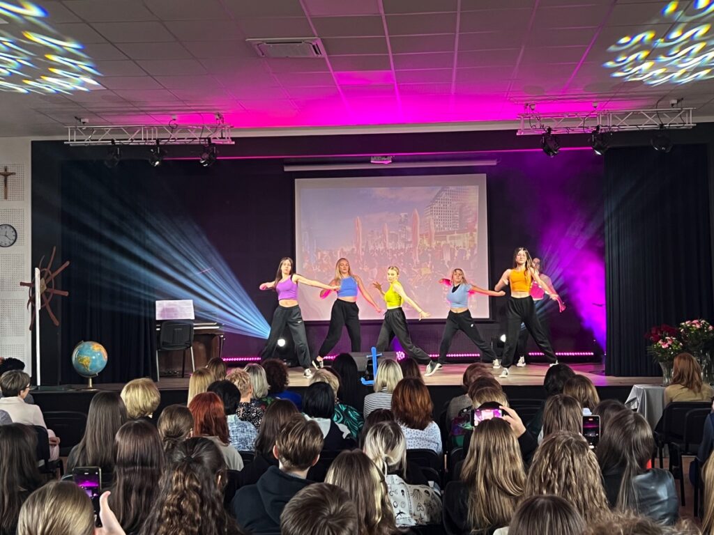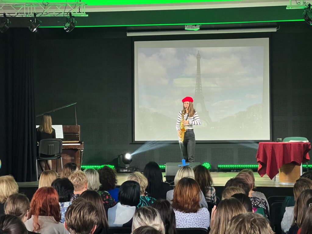 13 października 2022 roku w auli społeczność szkolna świętowała Dzień Edukacji Narodowej. Z tej okazji nie zabrakło serdecznych życzeń, wyrazów uznania i podziękowań za trud włożony w edukację i wychowanie młodzieży. Swoją wdzięczność wyrazili zarówno uczniowie, jak i rodzice. W ich w imieniu życzenia złożył Przewodniczący Rady Rodziców Jarosław Świtała. Podziękowania dla pedagogów licealiści wyrazili również w przygotowanej części artystycznej, która z przymrużeniem oka, nawiązując do pracy nauczycieli, wywoływała nie tylko uśmiech na twarzy, ale skłaniała również do refleksji.