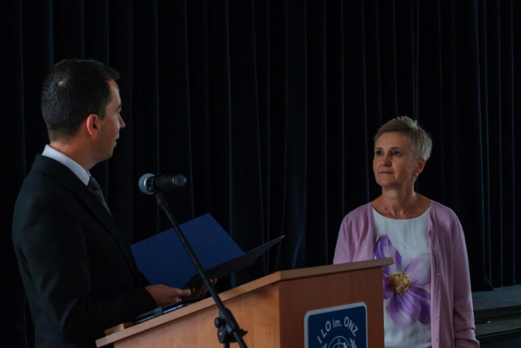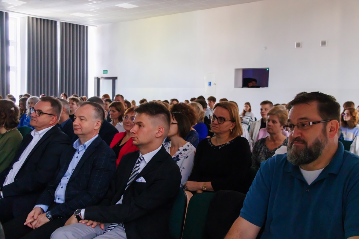 admin 2 lata temu Organizacyjne , UroczystościZwyczajem lat ubiegłych 13 października 2023 społeczność naszej szkoły świętowała Dzień Edukacji Narodowej. Uroczystość swoją obecnością zaszczycili: Poseł na Sejm RP Beata Strzałka, Starosta Biłgorajski Andrzej Szarlip i Przewodniczący Rady Rodziców Jarosław Świtała, którzy wyrazili wdzięczność za trud włożony w edukację i wychowanie młodzieży. Starosta wręczył także wyróżnionym nauczycielom Nagrody Starosty. Za przekazaną wiedzę, życzliwość i wsparcie podziękowali swoim pedagogom uczniowie podczas akademii szkolnej. W części artystycznej młodzież nawiązała także do 250. rocznicy utworzenia Komisji Edukacji Narodowej i jej znaczenia dla rozwoju oświaty.
