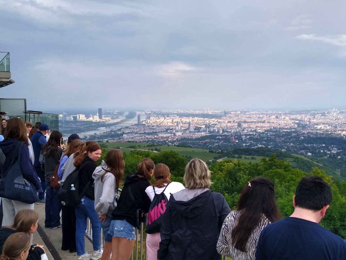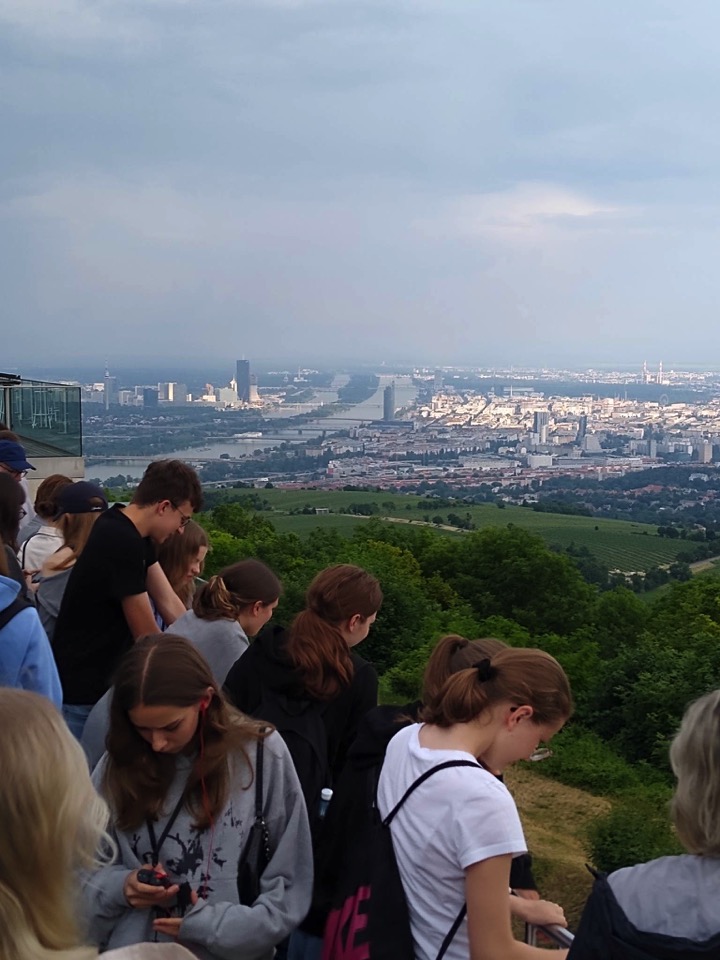 Kolejny dzień uczniowie spędzili w austriackiej stolicy. W cesarskim Wiedniu zachwycali się zabytkową zabudową miasta, a także nowoczesnymi rozwiązaniami architektonicznymi. Duże wrażenie zrobił na naszych turystach barokowy pałac Schönbrunn z przepięknym ogrodem, wpisany na listę światowego dziedzictwa UNESCO. Ponadto uczniowie zobaczyli m. in. katedrę św. Szczepana, pałac Hofburg, Dom Hundertwassera i odwiedzili park rozrywki Prater, a podczas przejazdu autokarem mieli okazję obserwować jedną z czterech głównych siedzib ONZ na świecie – Vienna International Centre. Stamtąd grupa udała się do oddalonej około 80 km od Wiednia malowniczej doliny Wachau, miejscu wpisanym na listę UNESCO, gdzie każda epoka historyczna pozostawiła po sobie architektoniczne ślady. Podczas rejsu statkiem po Dunaju licealiści mieli okazję podziwiać liczne zabytki o charakterze sakralnym i świeckim, a także charakterystyczne dla tego obszaru uprawy winorośli i moreli. Pobyt w Austrii zakończył się wizytą na wiedeńskim wzgórzu Kahlenberg, z którego Jan III Sobieski dowodził zwycięską bitwą z Turkami.