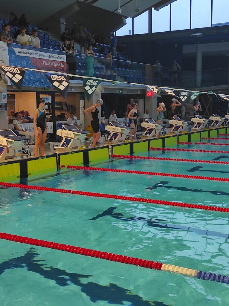 admin 2 lata temu Konkursy , Organizacyjne , Osiągnięcia , Sport12 grudnia 2023 roku w Aqua Lublin odbył się finał wojewódzki Licealiady w pływaniu. W klasyfikacji szkół ponadpodstawowych uczniowie naszej szkoły drużynowo zajęli bardzo wysokie III miejsce w województwie. Po raz pierwszy w historii występów w tych zawodach drużyna dziewcząt w sztafecie 6×25 m stylem dowolnym w składzie: Anna Biernacka (III D), Anna Jonik (IV A), Kinga Cich (II B), Kornelia Jagucak (II i), Hanna Wasąg (II G), Martyna Łyczak (I B) oraz Natalia Budzyńska (I E) zdobyła brązowe medale, zajmując III miejsce. W stylu klasycznym świetnie spisała się Martyna Łyczak, która była piąta. Z kolei w stylu grzbietowym Kinga Cich zajęła VIII lokatę, a do brązowego medalu zabrakło jej tylko 0,6 sekundy. Hanna Wasąg i Anna Jonik w wyścigu w stylu dowolnym zajęły odpowiednio XIII i XIV miejsce.