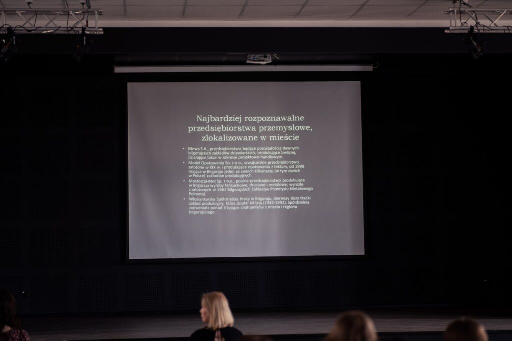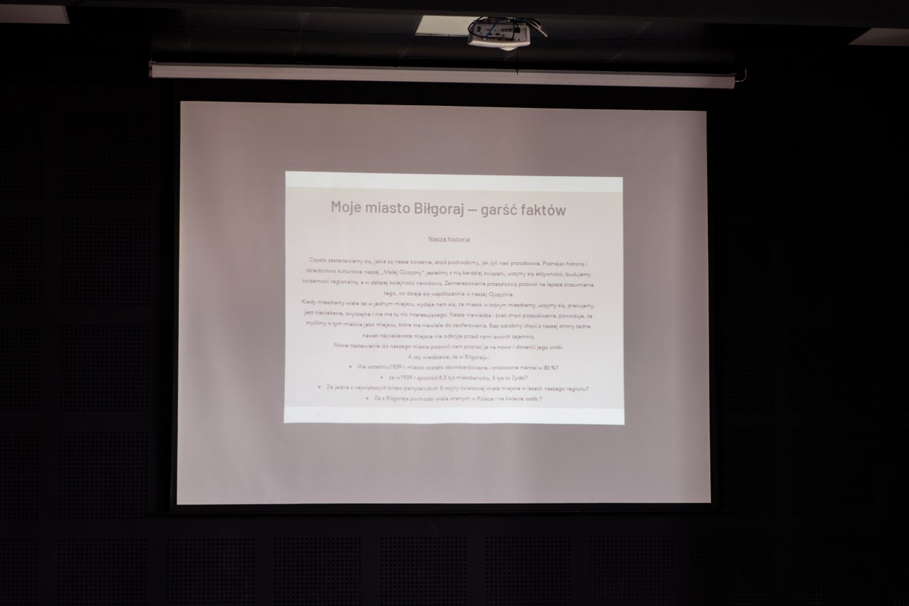admin 4 lata temu OrganizacyjneCzęsto zastanawiamy się, jakie są nasze korzenie, skąd pochodzimy, jak żyli nasi przodkowie. W bieżącym roku szkolnym w naszej szkole realizowana była innowacja pedagogiczna „Nasze miasto Biłgoraj. Wczoraj, dziś, jutro”, której celem było kształtowanie tożsamości lokalnej, przybliżenie uczniom dziejów i kultury własnego regionu, tworzenie silnej więzi z tzw. „małą ojczyzną”. Uczniowe klasy III Fp podzieleni zostali na grupy i opracowywali zagadnienia związane z Biłgorajem: historię, kulturę, mieszkańców, władze samorządowe oraz gospodarkę. Wszystkie informacje o temacie, zadaniach oraz wskazówki, gdzie szukać opracowań licealiści znaleźli na stworzonej dla nich stronie internetowej. Zespoły przedstawiły rezultaty swojej pracy we wspólnej prezentacji multimedialnej, którą uczniowie naszej szkoły zobaczyli podczas spotkania w auli w piątek 27 maja 2022 r.