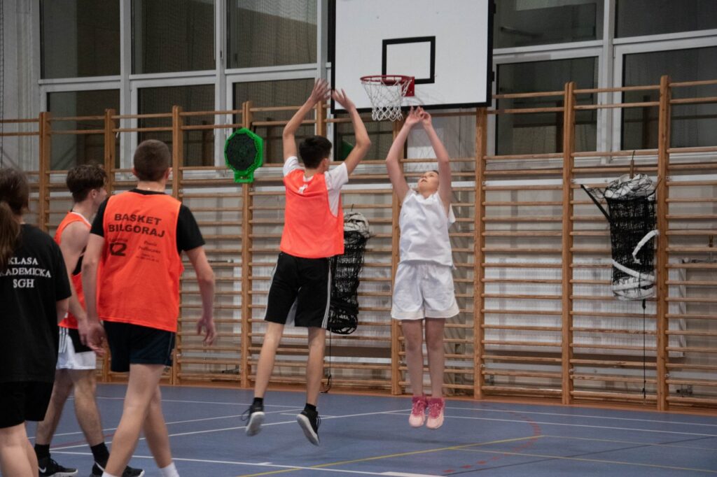 10 grudnia 2021 roku w hali sportowej naszej szkoły odbył się Mikołajkowy Turniej Koszykówki 3×3. Dyscyplina ta miała swój debiut na Igrzyskach Olimpijskich w Tokio oraz znalazła się w kalendarzu zawodów sportowych Szkolnego Związku Sportowego. Towarzyski charakter imprezy, specyfika gry, postawa fair play – to wszystko towarzyszyło zmaganiom uczniów naszego liceum. Na koniec rozgrywek pan Łukasz Krawiec, uczestnik tegorocznych mistrzostw Polski w koszykówce 3×3 oraz animator tej dyscypliny na terenie Biłgoraja, wręczył naszym zawodnikom pamiątkowe dyplomy.