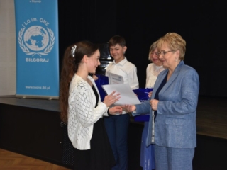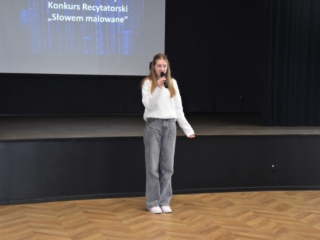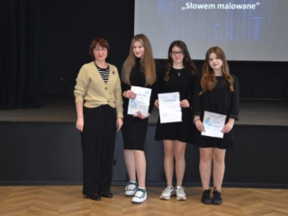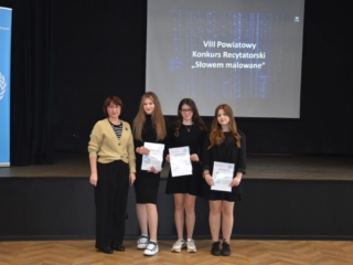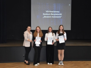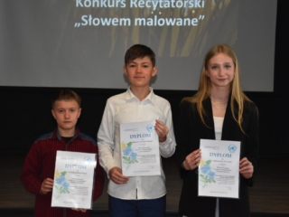 12 kwietnia 2024 r. w I Liceum Ogólnokształcącym im. ONZ w Biłgoraju odbył się VIII Powiatowy Konkurs Recytatorski „Słowem malowane”. Tradycyjnie jego uczestnicy to młodzież starszych klas szkół podstawowych powiatu biłgorajskiego. Recytatorzy zaprezentowali teksty różnych autorów, których uznali za bliskich swojej wrażliwości. Konkursowe zmagania ocenione zostały przez jury w składzie: pani Halina Ewa Olszewska, pani Ewa Bordzań, pani Elżbieta Ciryt. Wystąpienia uczestników podsumowała pani dyrektor Jolanta Rycyk, podkreślając niezwykłą atmosferę poetyckiego spotkania i zaangażowanie młodych artystów oraz ich opiekunów.