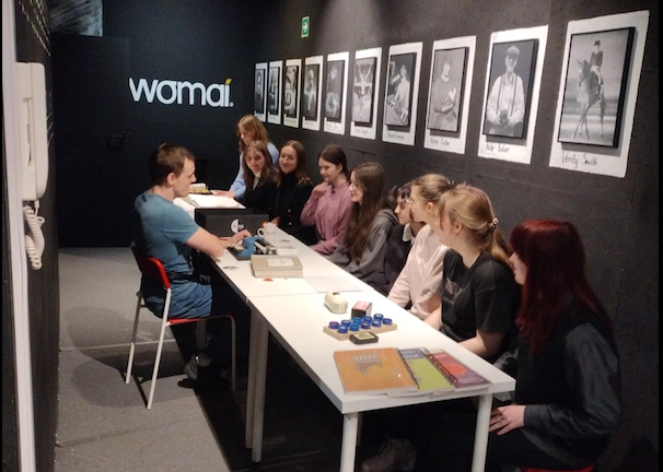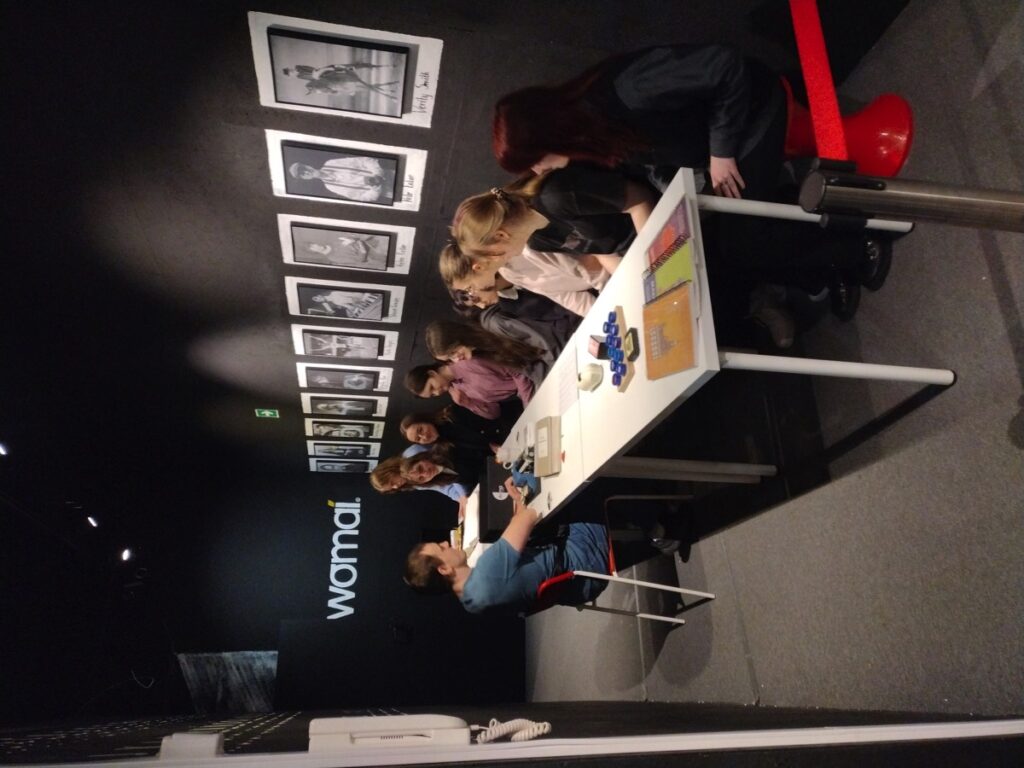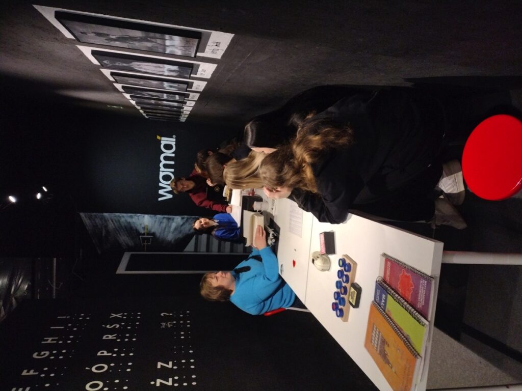 Następnie odbyły się warsztaty w Centrum Nauki i Zmysłów WOMAI prowadzone przez niewidomych instruktorów – przewodników, którzy opowiadali o swojej pracy i praktycznie pokazywali, jak wygląda świat ludzi pozbawionych wzroku. Ćwiczenia w przestrzeniach w ciemności oraz rozmowy z przewodnikami wywarły na grupie młodych ludzi ogromne wrażenie.