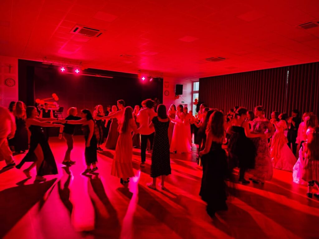 admin 10 miesięcy temu OrganizacyjneMłodzież naszej szkoły po raz kolejny udowodniła, że potrafi się świetnie integrować, bawić i wzajemnie inspirować. Okazją do tego typu aktywności był „Bal u Fredry” zorganizowany 13 czerwca 2025 roku w auli szkoły. Warunkiem uczestnictwa w zabawie był obowiązujący strój z epoki romantycznej, ponieważ impreza stanowiła ważne ogniwo realizacji projektu dotyczącego życia i twórczości Aleksandra Fredry – jednego z najwybitniejszych polskich komediopisarzy, człowieka wielu talentów, reprezentanta romantyzmu.