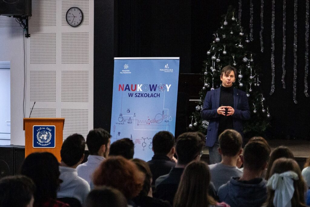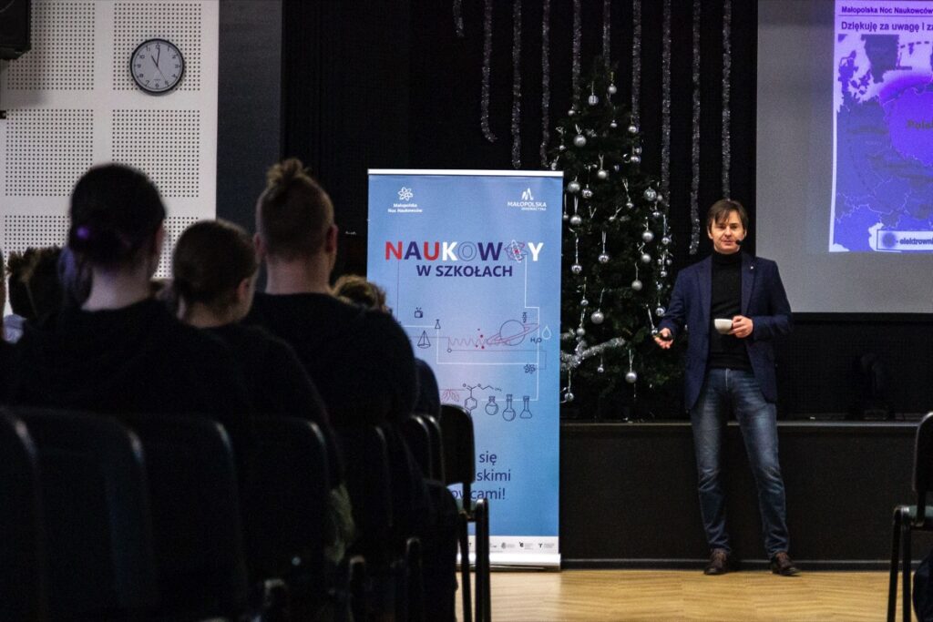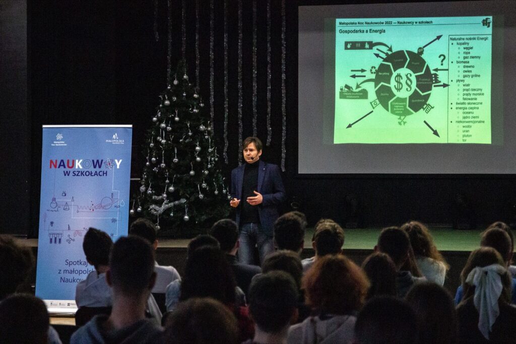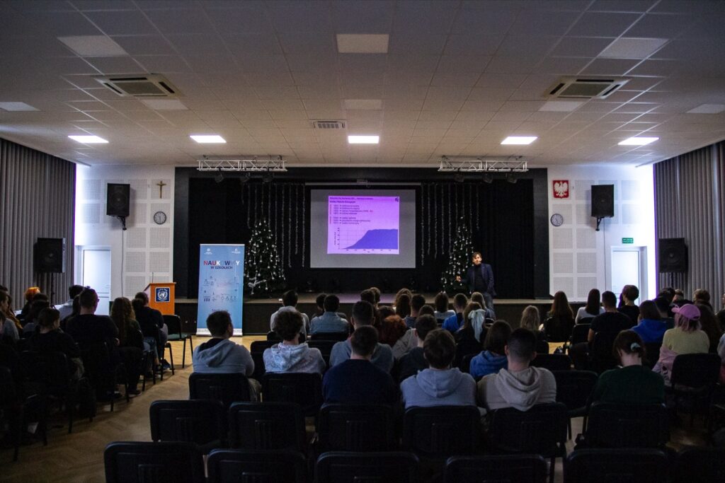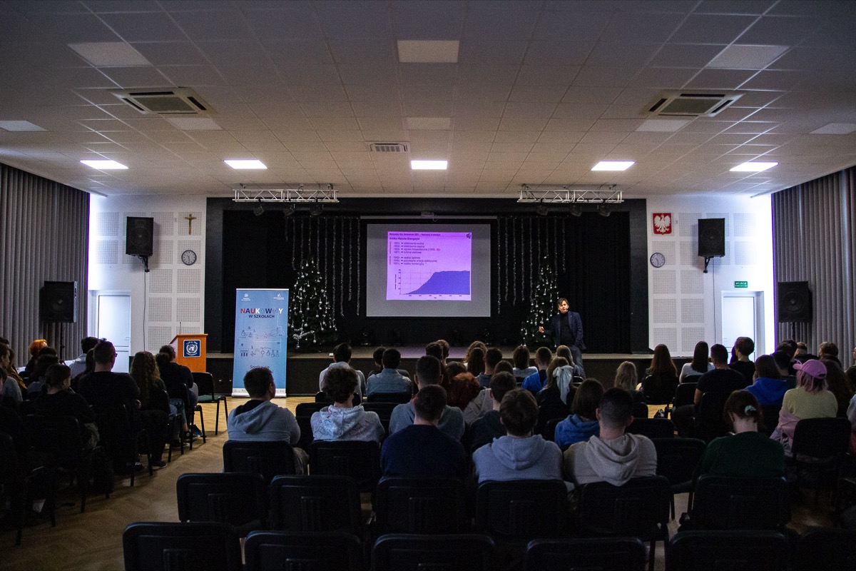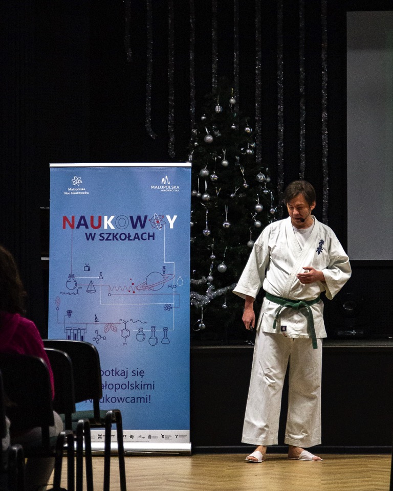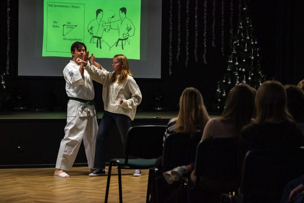 16 grudnia 2022 roku w auli naszej szkoły dr Wiktor Parol z Instytutu Fizyki Jądrowej Polskiej Akademii Nauk poprowadził dla licealistów wykłady: „Zastosowanie Fizyki w Karate” oraz „Czy naprawdę muszę zrezygnować ze smartphona, by ratować planetę? Czyli czysta energia szansą na dalsze życie w komforcie”. Pierwszy wykład dotyczył elementów mechaniki bryły sztywnej. Połączony był z demonstracją omawianych układów fizycznych w wykonywanych technikach Karate Kyokushinkay. Podczas kolejnego wykładu prelegent koncentrował się na energetyce jądrowej oraz nieuchronności jej wdrożenia w Polsce. Podkreślił, że jest to niezbędne, aby utrzymać aktualny poziom i komfort życia z zachowaniem sprzyjającego środowiska naturalnego oraz spowolnić zmiany klimatu.