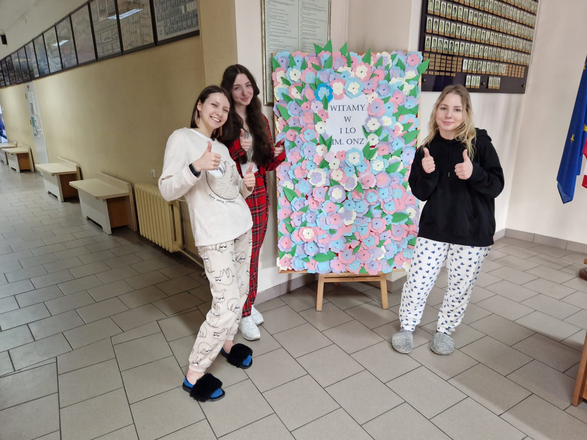 admin 3 lata temu Organizacyjne14.04.2023 r. w naszej szkole po raz kolejny odbył się dzień tematyczny, tym razem uczniowie mogli przyjść do szkoły w kapciach lub piżamie. Wielu licealistom pomysł się spodobał i zaangażowali się w akcję. Szczególnie podczas przerw międzylekcyjnych na korytarzach można było zauważyć uczniów ubranych w kombinezony, luźne koszulki oraz popularne w ostatnim czasie spodnie w kratkę, które w połączeniu z wygodnymi kapciami prezentowały się kolorowo i wesoło.