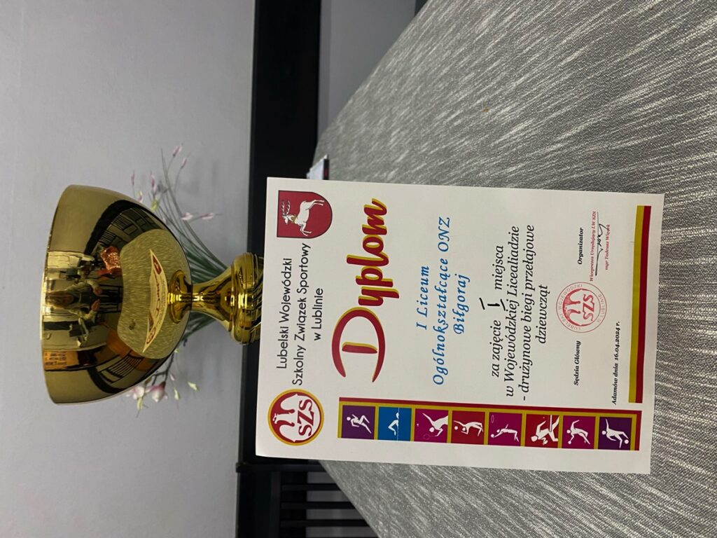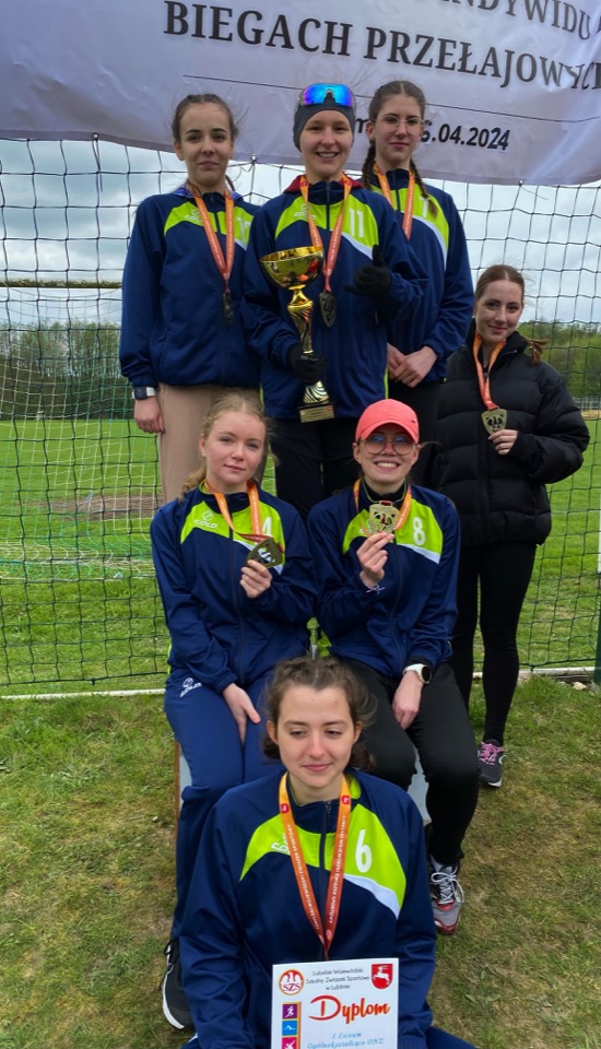 16 kwietnia 2024 roku w Adamowie odbył się finał Wojewódzkiej Licealiady w Drużynowych Biegach Przełajowych. Po wcześniejszych zwycięstwach na szczeblu powiatowym i półfinale wojewódzkim drużyna dziewcząt z naszego liceum zakwalifikowała się do grona najlepszych. Mimo trudnych warunków atmosferycznych licealistki w pięknym stylu zdobyły trzeci rok z rzędu złoto. W zawodach startowało 10 drużyn z sześciu rejonów. Naszą szkołę reprezentowały: Karolina Guska III C, Natalia Przytuła I C, Marlena Tyszko III C, Natalia Metner III F, Kornelia Jagucak II i, Anastasiia Honchar II H, Maja Łukaszczyk II E.