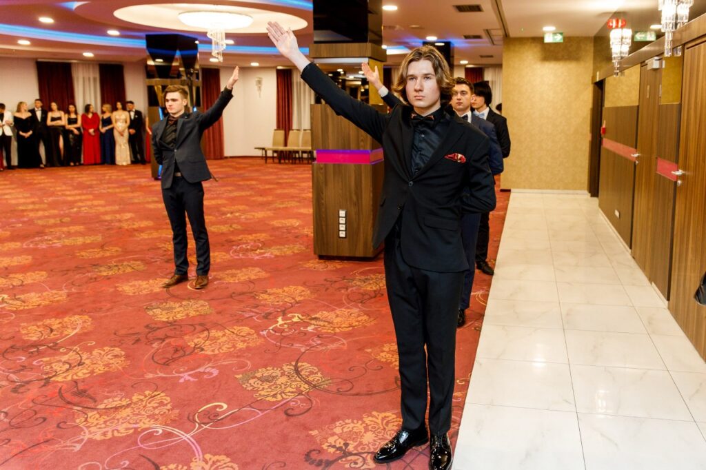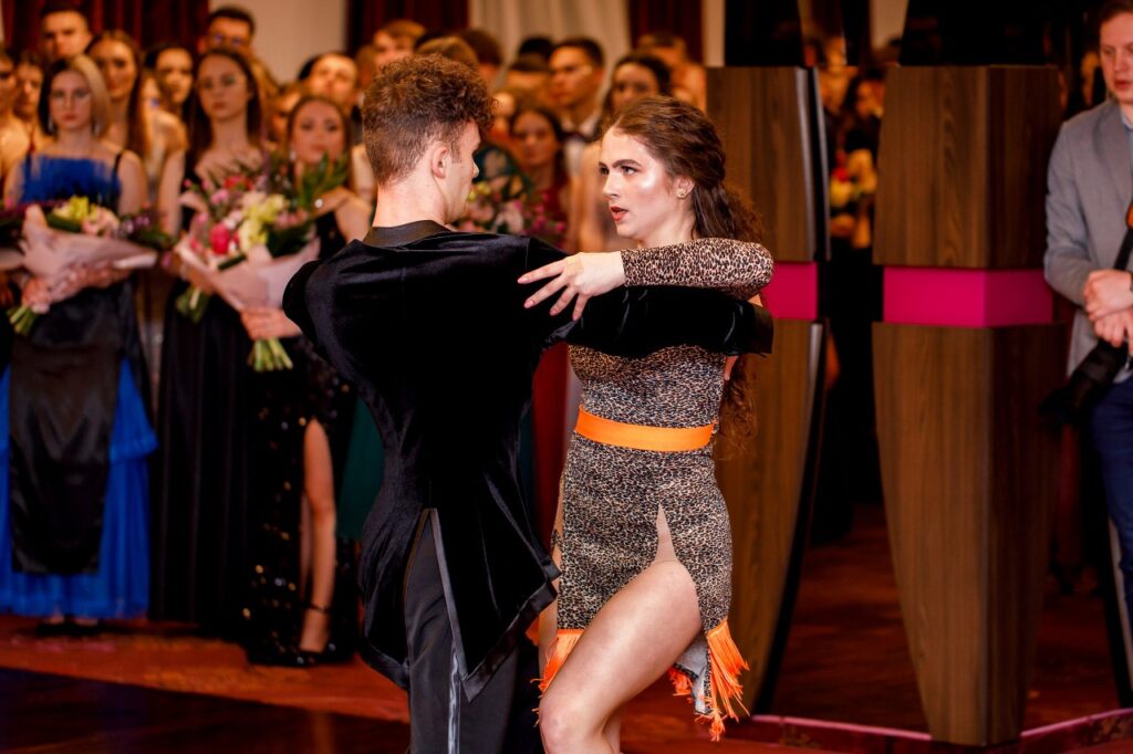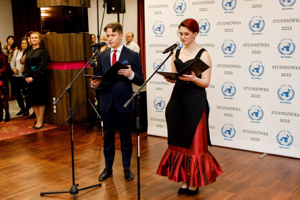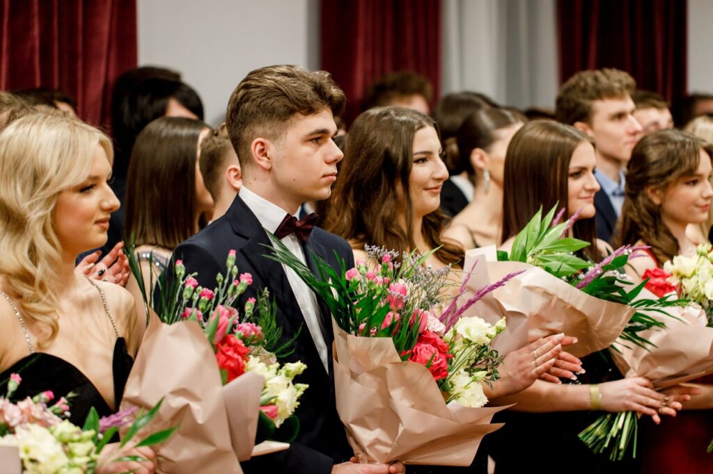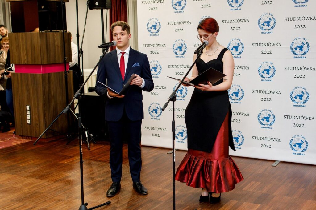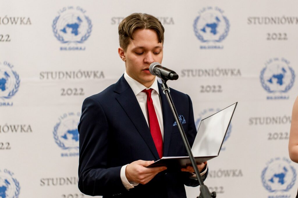 Po wystąpieniach gości ponownie głos zabrali maturzyści, którzy wyrazili wdzięczność dyrekcji, wychowawcom i nauczycielom za stworzenie warunków do zdobywania wiedzy, zachęcanie do podejmowania odważnych decyzji i rozbudzania pasji, troskę i opiekę, a także wszelkie dobro, którego doświadczyli w szkole i poza jej murami. Szczególne podziękowania skierowali do swoich najbliższych – rodziców, którzy każdego dnia pomagają pokonywać najtrudniejsze przeszkody, wspierają i wierzą w sukces, a podczas przygotowań do studniówki dołożyli wszelkich starań, aby ten wieczór był wyjątkowy i niepowtarzalny.