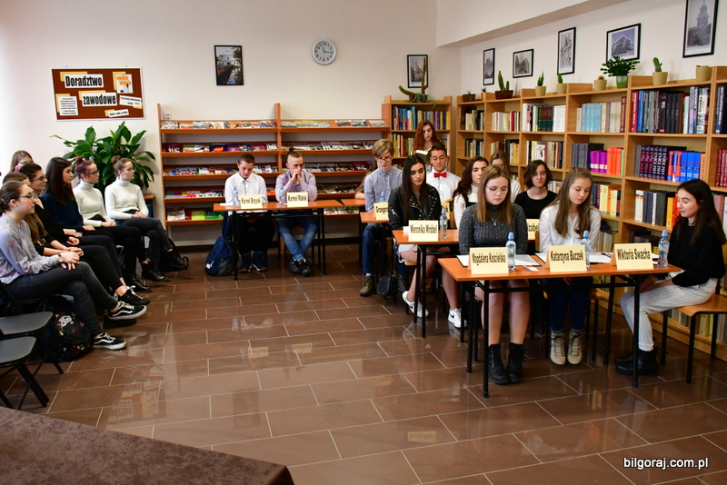 14 grudnia 2019 roku w Zespole Szkół Budowlanych i Ogólnokształcących w Biłgoraju. Dziewczęta czytały fragmenty powieści Olgi Tokarczuk – laureatki Literackiej Nagrody Nobla.