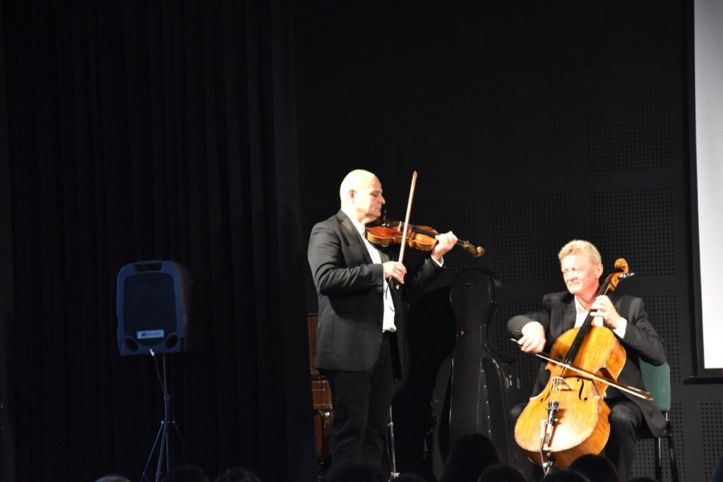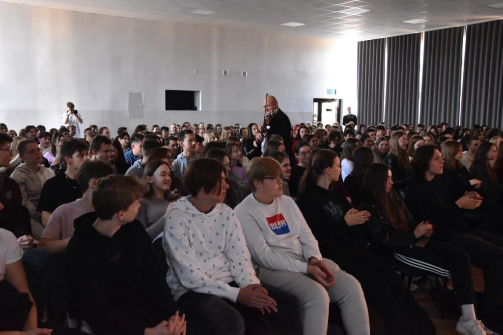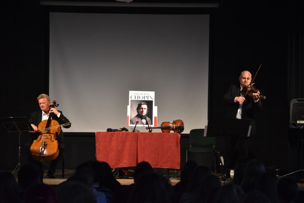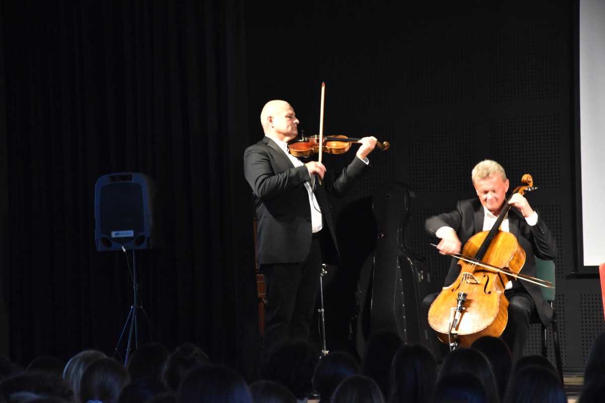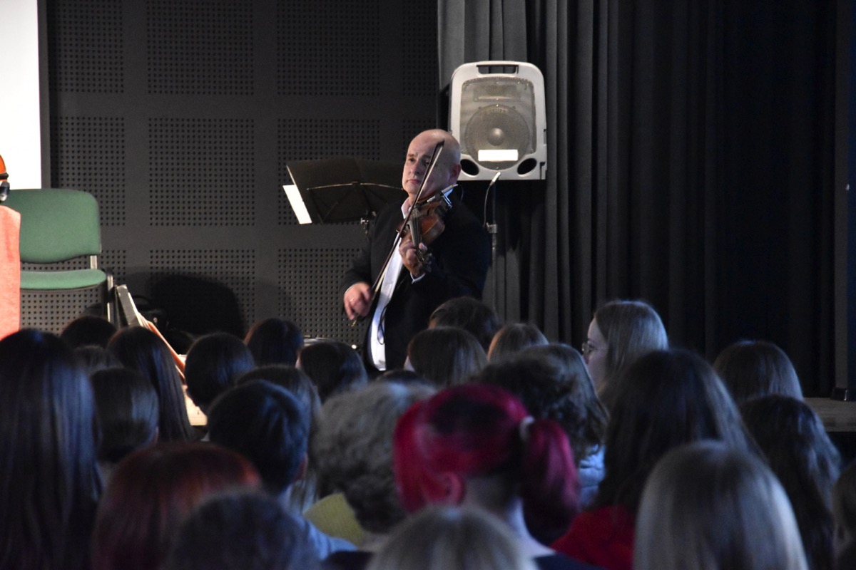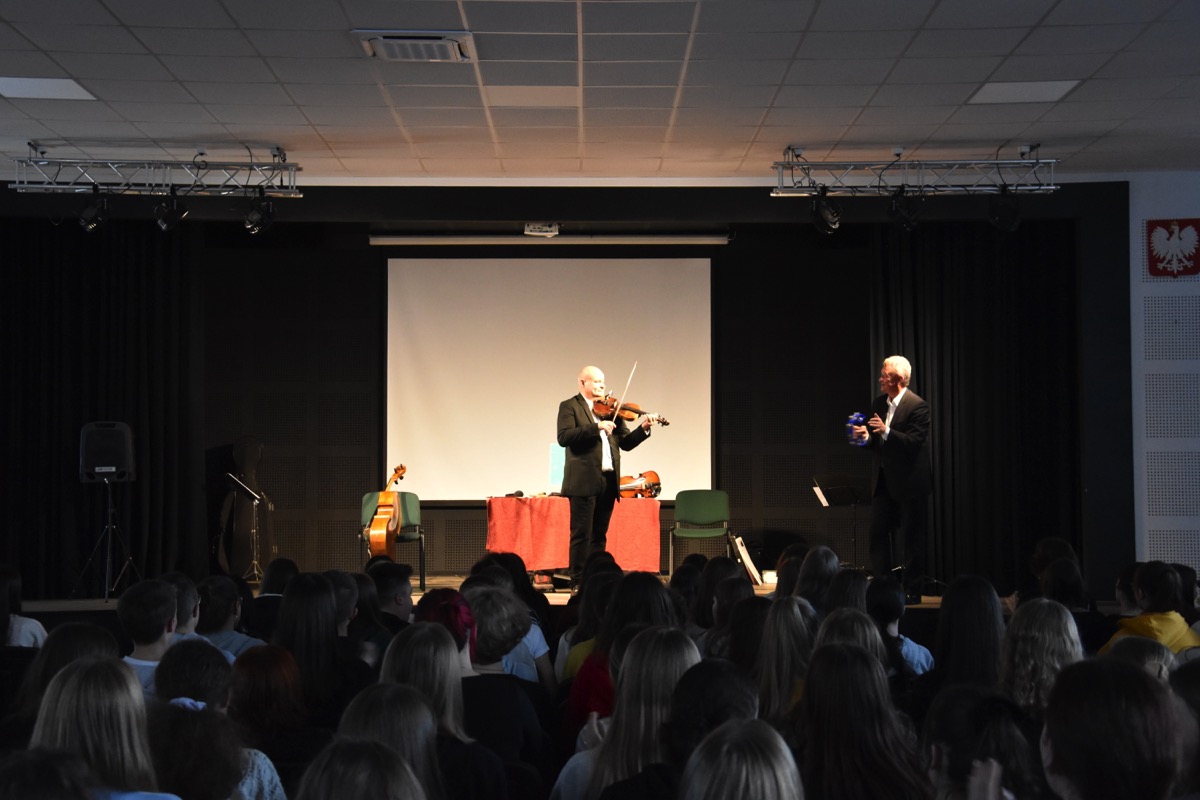 17 października 2022 r. w auli szkoły odbył się koncert muzyczny pod hasłem „Smyczki inaczej”. Muzycy w wirtuozowskim stylu zaprezentowali możliwości  instrumentów smyczkowych (skrzypiec, altówki i wiolonczeli), grając utwory muzyki: poważnej, rozrywkowej, ludowej, rockowej i country. Koncertowi towarzyszył wykład na temat „Bogactwa stylów muzycznych jako części różnorodności kulturowej świata”. Uczniowie mieli możliwość wysłuchania znanych utworów w ciekawej i bogatej aranżacji, bowiem wykonawcom towarzyszył akompaniament fortepianu lub orkiestry symfonicznej. Spotkanie zakończył quiz muzyczny. Nagrody otrzymywali uczniowie jako znawcy muzyki pochodzącej ze znanych filmów i seriali polskich i zagranicznych. Tego rodzaju projekty muzyczne cieszą się ogromnym zainteresowaniem młodzieży i są ciekawą i wartościową formą edukacji muzycznej.