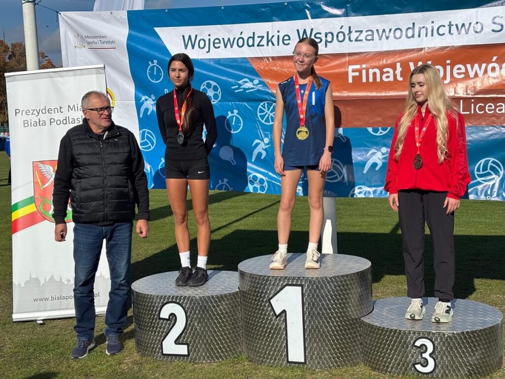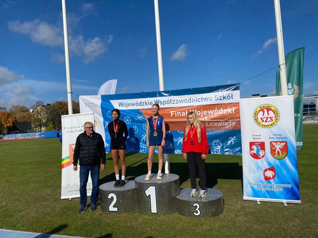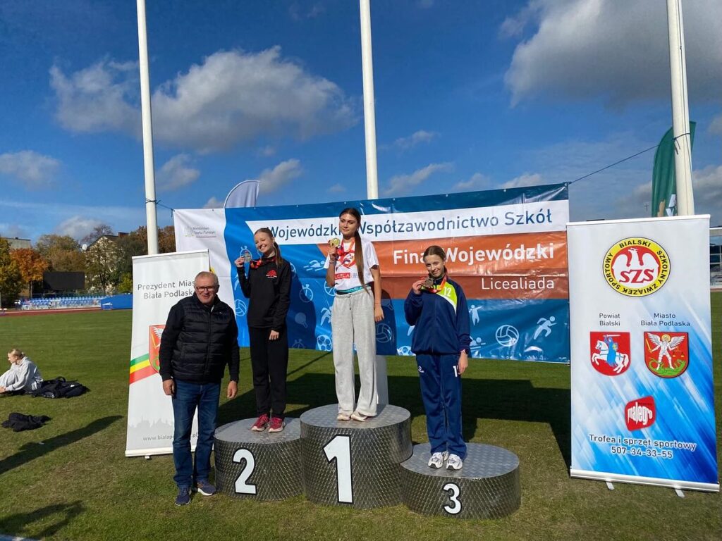 16 października 2025 roku na stadionie Akademickim w Białej Podlaskiej odbył się Finał Wojewódzki Licealiady w Szkolnej Lidze Lekkoatletycznej. W imprezie uczestniczyły najlepsze drużyny ze szkół ponadpodstawowych województwa lubelskiego. Na podium stanęły trzy nasze zawodniczki: Diana Łukasik zdobyła złoty medal w biegu na 1500 m, a brązowe medale wywalczyły Oliwia Rożek w biegu na 400 m i Eliza Bielak w biegu na 800 m. W zawodach znakomicie zaprezentował się cały zespół z naszej szkoły. Dziewczęta rywalizowały w kilku konkurencjach i w klasyfikacji drużynowej zajęły III miejsce.