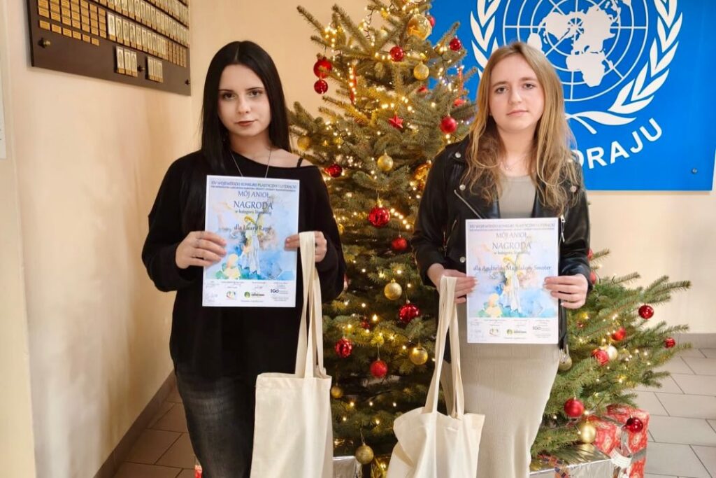 ​12 grudnia 2025 roku odbyło się podsumowanie XIV Wojewódzkiego Konkursu Plastycznego i Literackiego „Mój Anioł. Mistrz życia” organizowanego pod patronatem Lubelskiego Kuratora Oświaty i Starosty Krasnostawskiego.​Konkurs adresowany jest do dzieci i młodzieży województwa lubelskiego i nieustannie cieszy się dużą popularnością. Wśród nagrodzonych w kategorii szkół ponadpodstawowych są uczniowie naszej szkoły. Za najlepszy tekst poetycki I nagrodę otrzymała Laura Rapa z klasy III E. W dziedzinie prozy nagrodzone zostały: Natalia Kukiełka z klasy II D – I nagroda, a Andżelika Smoter z klasy II E – III nagroda. Z kolei Lena Rudnicka z klasy II D otrzymała wyróżnienie również w dziedzinie tekstów prozatorskich.​