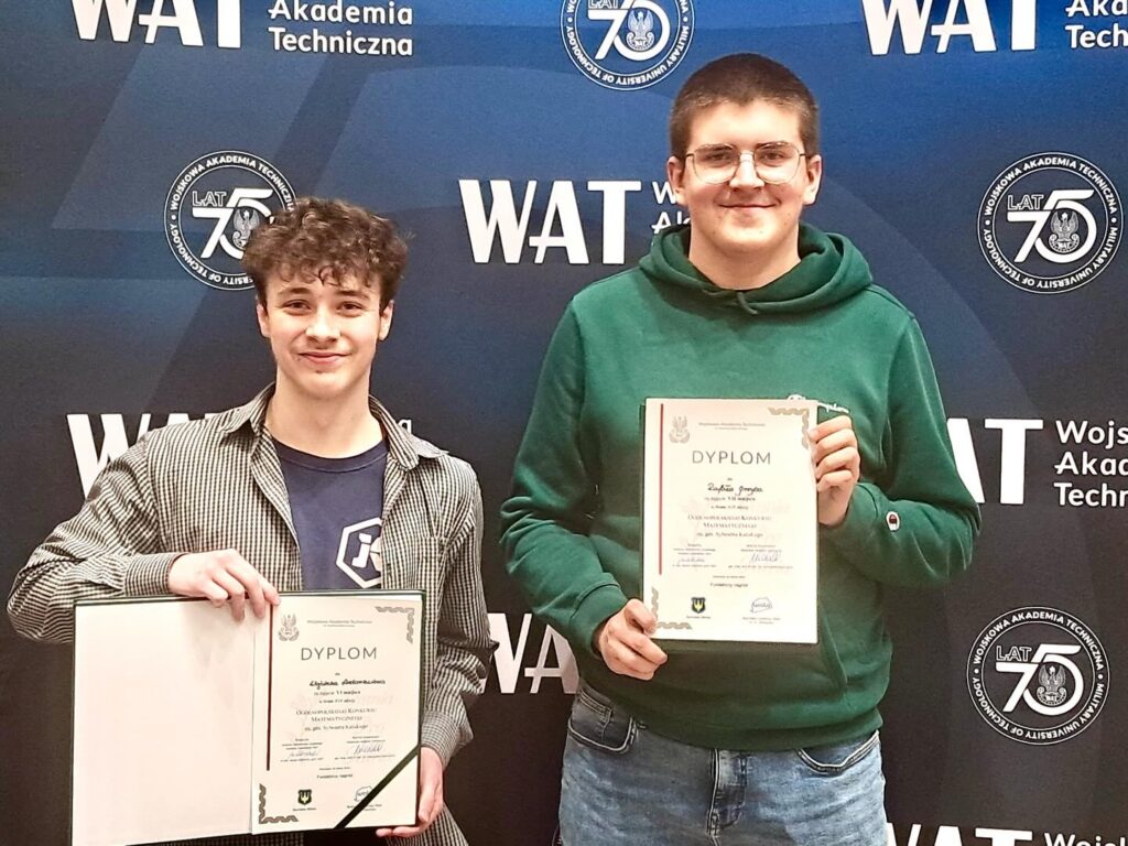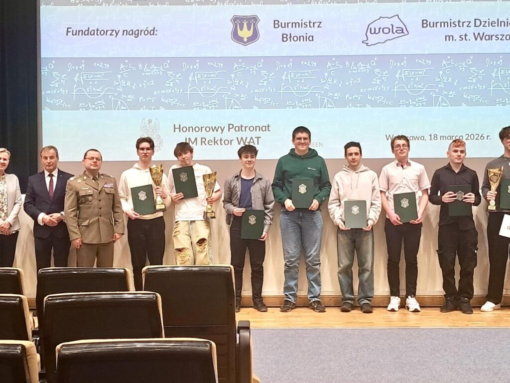 admin 2 tygodnie temu Konkursy , Organizacyjne , Osiągnięcia18 marca 2026 roku w Warszawie odbył się finał XVII Ogólnopolskiego Konkursu Matematycznego im. gen. Sylwestra Kaliskiego. Wzięło w nim udział 124 uczestników wyłonionych spośród ponad 2000 uczniów liceów ogólnokształcących i techników.Rafał Grzyb z klasy III A uzyskał tytuł laureata (zajął 7. miejsce), natomiast Gabriel Grabias z klasy III A i Eryk Łoński z klasy IV B uzyskali tytuł finalisty.
