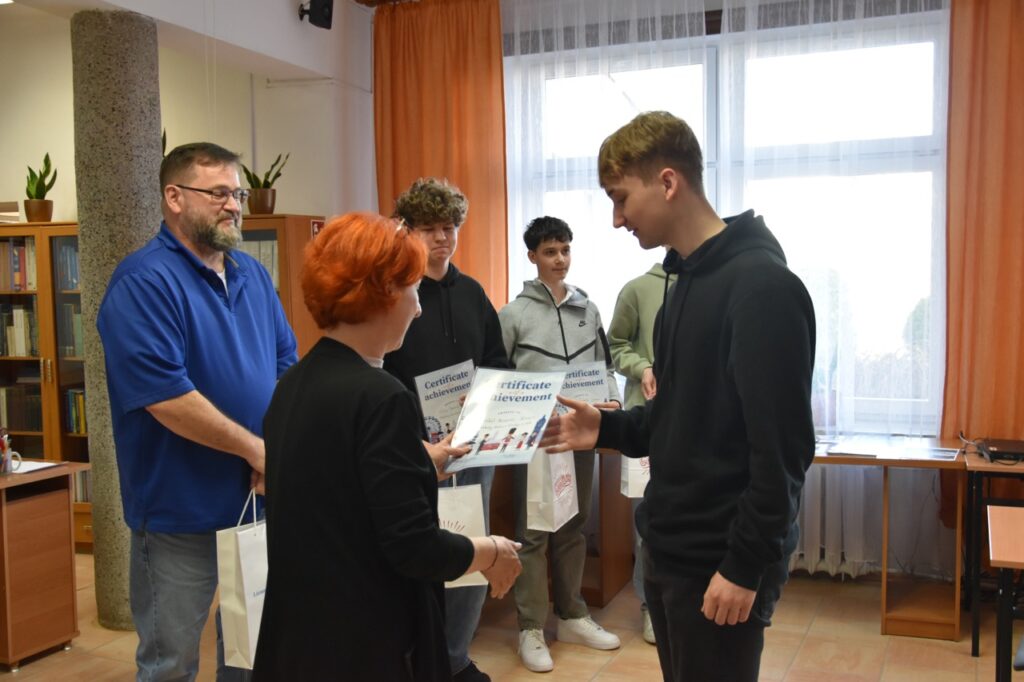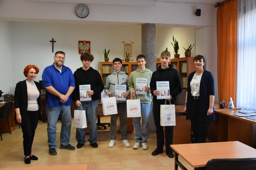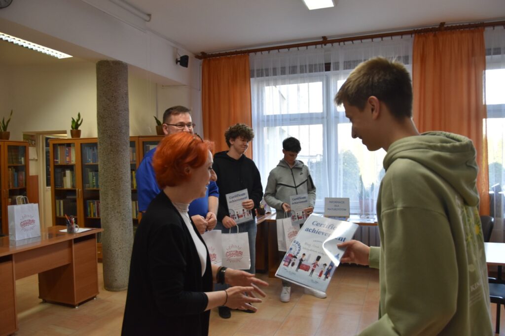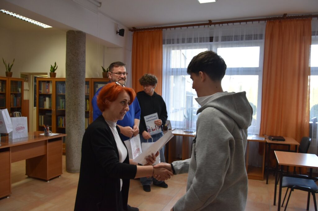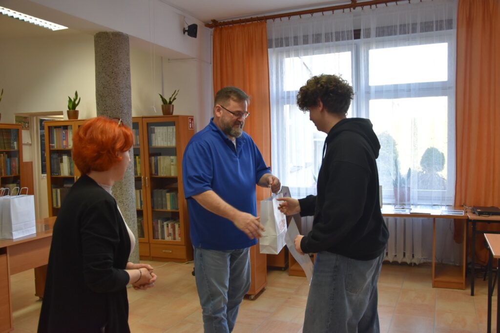 admin 2 tygodnie temu Konkursy , Organizacyjne , Osiągnięcia11 marca 2026 roku odbyło się podsumowanie Szkolnego Konkursu Wiedzy o USA oraz uroczyste wręczenie nagród. Do konkursu przystąpiło 60 uczniów, po 3 przedstawicieli z każdej klasy, a ich niełatwym zadaniem było rozwiązanie testu składającego się z 80 pytań z zakresu historii, geografii oraz kultury USA. Najwyższy wynik uzyskał Filip Szwed z klasy II A (opiekun p. Marta Pindor). Drugie miejsce zdobyli ex aequo Marcel Matys z klasy III E (opiekun p. Walentyna Waszczuk-Różańska) oraz Jakub Świtała z klasy I B (opiekun p. Aneta Swatowska). Laureatem trzeciego miejsca został Błażej Osuch z klasy II E (opiekun p. Anna Zych-Watrak), a na czwartej pozycji uplasował się Rafał Różański z klasy III G (opiekun p. Patrycja Kanty).
