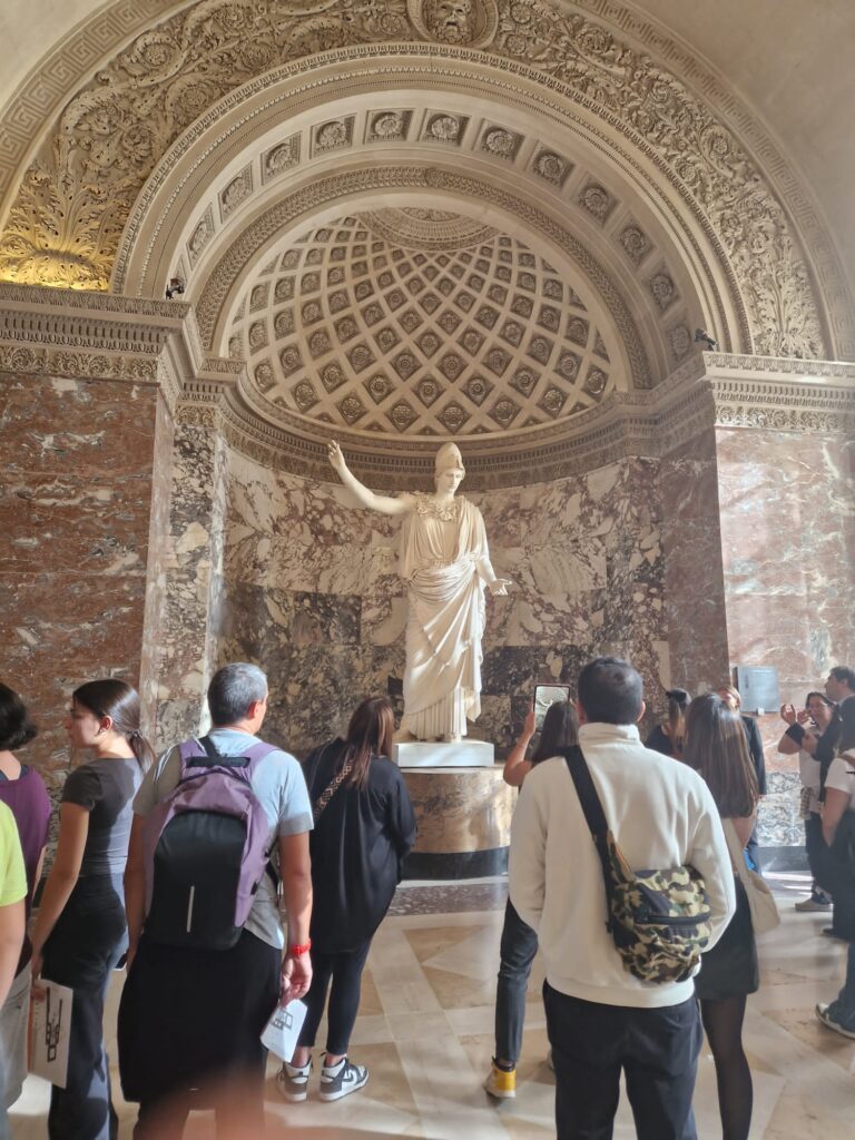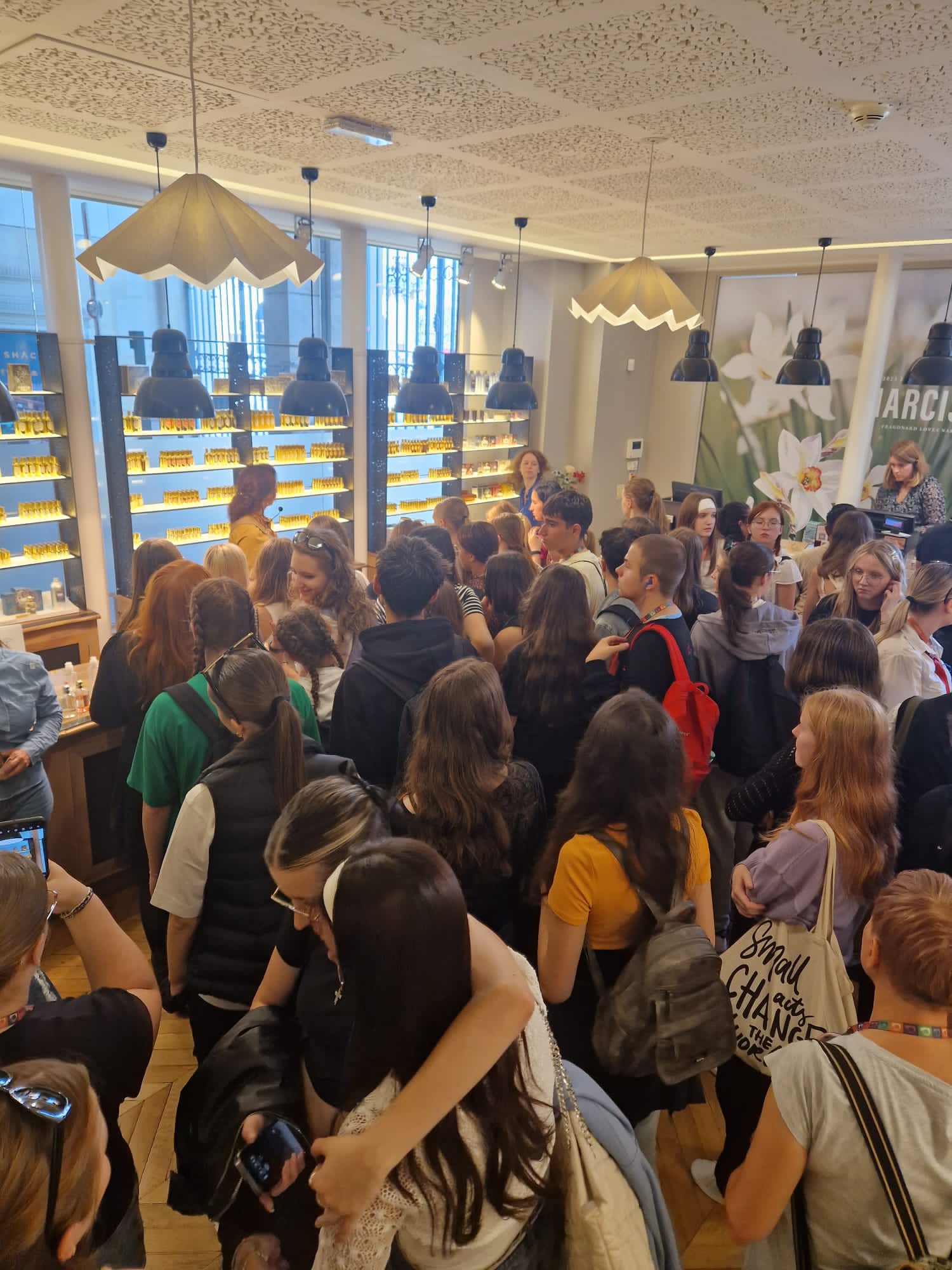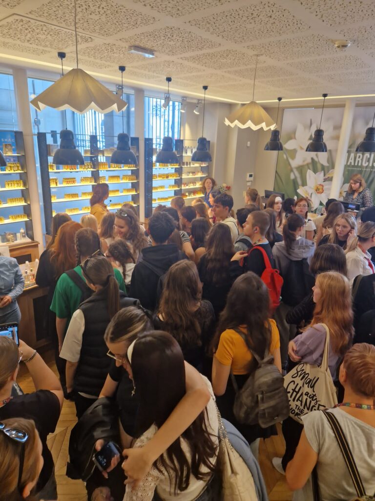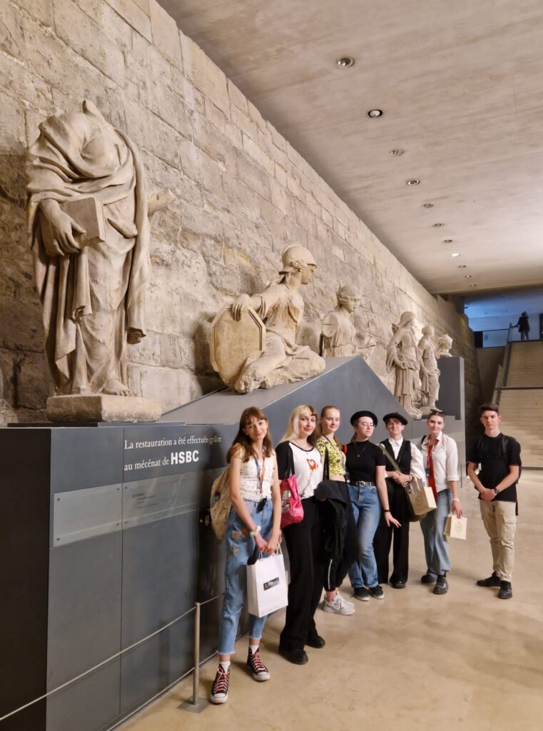 Już pierwszego dnia uczniowie odbyli niezapomniany spacer po Paryżu. Mieli podczas niego możliwość zobaczenia słynnego Łuku Triumfalnego, przejścia się Polami Elizejskimi, zwiedzenia kościoła Marii Magdaleny. Jednym z przystanków na trasie była też cukiernia Pierre Hermé, gdzie można zasmakować najlepszych w całym Paryżu makaroników i croissantów. Udali się również na Plac Vendome, gdzie znajduje się hotel Ritz oraz ostatnie mieszkanie, w którym przebywał Fryderyk Chopin. Odwiedzili piękny polski kościółek pod wezwaniem Najświętszej Maryi Panny Wniebowziętej oraz muzeum perfum Fregonard, poznali niesamowitą historię tworzenia perfum i rozkoszowali się pięknymi zapachami. Kulminacyjnym punktem dnia była wizyta w Luwrze – najsłynniejszym francuskim muzeum oraz w Dzielnicy Łacińskiej.