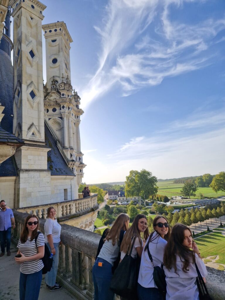 Nazajutrz licealiści wybrali się poza mury Paryża. W Chartes zwiedzali przepiękną gotycką katedrę słynącą ze średniowiecznych witraży. Oczarowani ruszyli do największej siedziby królewskiej znajdującej się w Dolinie Loary, czyli zamku w Chambord. Mieli okazję zobaczyć komnaty zamkowe oraz ogrody znajdujące się przy pałacu. Ich kolejnym celem był wspaniale zdobiony zamek w Cheverny, który zaskoczył oglądających unikatową kolekcją mebli.