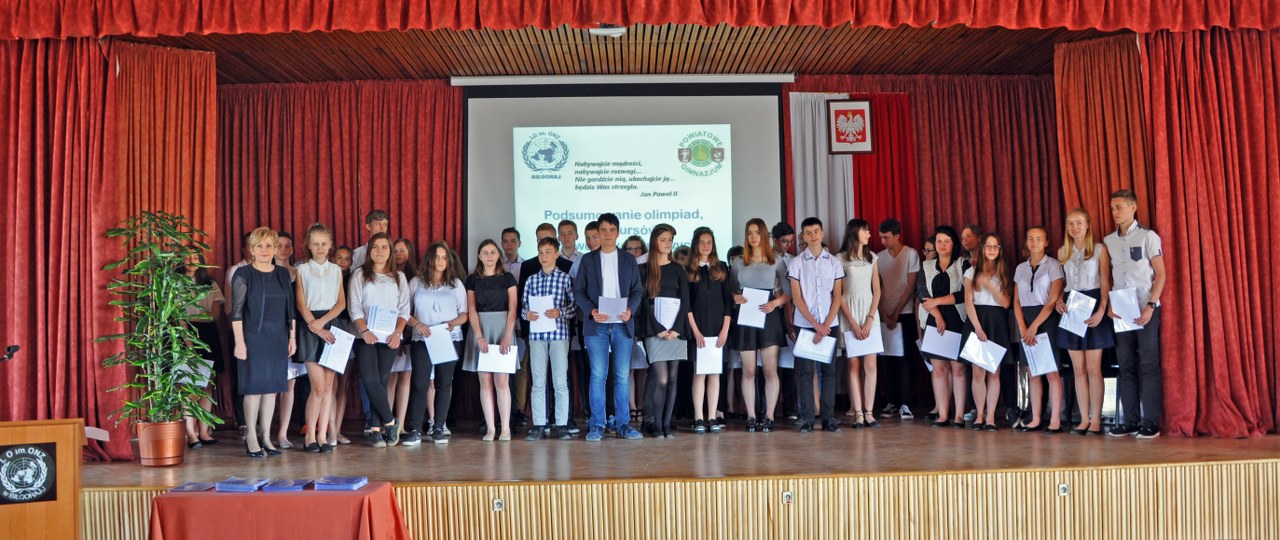 admin 9 lat temu Bez kategoriiW auli 2 czerwca odbyła się uroczystość podsumowująca sukcesy młodzieży w roku szkolnym 2016/2017. Doceniono pracę i wysiłek uczniów klas pierwszych i drugich liceum oraz pierwszych, drugich i trzecich gimnazjum, którzy zdobyli najwyższe laury w olimpiadach, konkursach i zawodach sportowych. Dyrekcja szkoły wręczyła Listy Gratulacyjne 128 uczniom liceum i 88 uczniom gimnazjum za szczególne osiągnięcia na szczeblu międzynarodowym, ogólnopolskim, wojewódzkim i powiatowym.