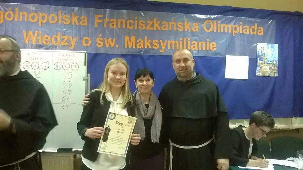 Zuzanna Wnęk, uczennica klasy III A gimnazjum została finalistką XI Ogólnopolskiej Olimpiady Franciszkańskiej Wiedzy o św. Maksymilianie. Finał Olimpiady, w którym wzięło udział 85 uczniów z całej Polski, odbył się w Siedlcach 29 marca 2017 r. Rywalizację na szczeblu ogólnopolskim poprzedziły eliminacje szkolne oraz diecezjalne.