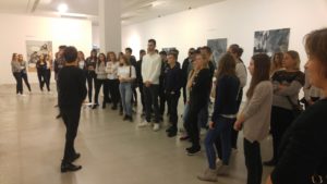 Dnia 27 października 2017 r. klasy III A i III D wyruszyły wspólnie na wycieczkę połączoną z pielgrzymką maturzystów. Pierwszego dnia wraz z przewodnikiem zwiedziliśmy wystawy w Muzeum Sztuki Współczesnej w Krakowie (MOCAK), gdzie mogliśmy poznać m. in. dzieła artystów: Pawła Książka, Witolda Stelmachiewicza, Kingi Nowak czy Moniki Drożyńskiej. Zwróciliśmy szczególną uwagę na stałą instalację MOCAK-u, a mianowicie „Między” Stanisława Dróżdża. Jest to jeden z najbardziej rozpoznawalnych eksponatów Muzeum Sztuki Współczesnej w Krakowie.